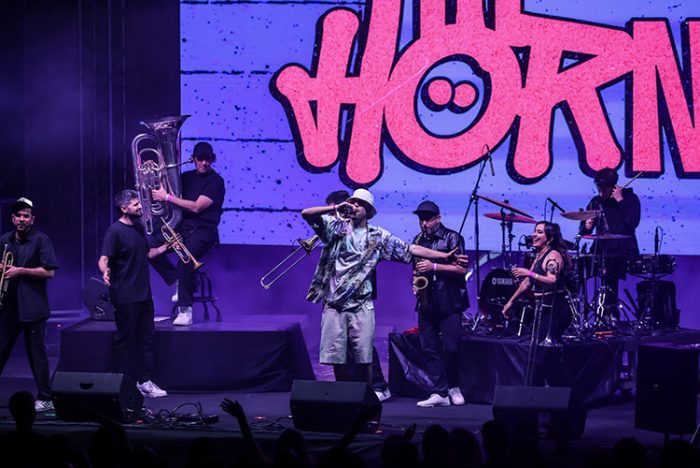 Y les llegó el turno a nuestros Hip Horns Brass Collective. Esa propuesta que mezcla música de Nueva Orleans, hip hop y otros elementos característicos de la música afroamericana. Fueron muy bien aceptados por un público que se metió de lleno en esa particular descarga de “funk-metal” (nos referimos a ese funk que imprimen con sus metales). Han llevado el concepto de espectáculo de calle al escenario y lo adornaron con sus coreografías. Para la ocasión se trajeron a dos raperos, Juli Giuliani y Mabreezee, que les dio un punto más rompedor. En breve tendrán nuevo disco y atentos a Mondo Sonoro.