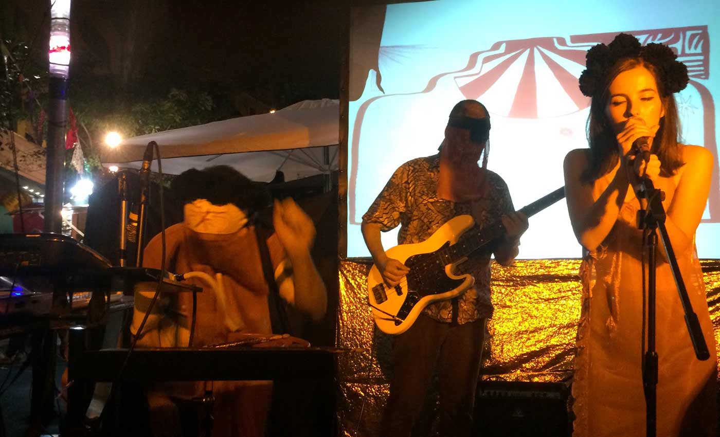 A las 20:30 en la plaza Tres Pilares se preparaba el espectáculo. Como actividades paralelas, el festival contaba con puestos de ropa, artesanía y maquillaje que dinamizaron al público. Entre ellos se encontraba May, de Tropicalia. Ella crea un género singular y muy tropical de turbantes, complementos y ropa con un gusto muy acertado para el evento. Otro de los puestos, Truca, vendía artículos reciclados de ropa de segunda mano. Las chicas de SkunkFunk maquillaron gratuitamente durante la noche del jueves a los asistentes al festival y Mara de “Art Seed” vendió su ropa de segunda mano durante los tres días.