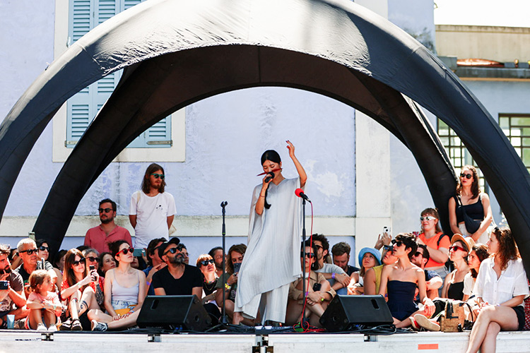 La jornada del sábado comenzó de la mejor manera posible, con el free-jazz de claro regusto a krautrock de Horse Lords ejerciendo como bienvenida. Los de Baltimore firmaron un magnífico concierto, en el que formas clásicas y vanguardistas convergieron en extensos desarrollos para concretar el sorprendente resultado de tal simbiosis. Hatis Noit (en la foto principal) resultó ser el regalo más exclusivo de todo el Sinsal, tras firmar la artista una actuación eterna en términos de belleza y elegancia. La presencia de la japonesa resultó tremendamente etérea y delicada, casi fantasmal, con una voz de soprano desbordando emociones en un público que demostró un intachable respeto ante la fragilidad de formas de la asiática. Fue la enésima confirmación del talante único de este festival y, precisamente, uno de los atractivos del asunto reside en poder (o tener que) cambiar radicalmente de estilo en apenas diez minutos. De tal forma que, aún conmocionados por el concierto de Hatis Noit, tocaba disfrutar con la consistencia de Brama. De la lágrima al movimiento agitado de cabeza al ritmo de los franceses, que parten de sonidos turcos (zanfoña eléctrica y adulterada incluida) para desarrollar un rock sólido que tiende a derivar en psicodelia o incluso garage. Una mixtura que siempre es muy agradecida en su versión de directo. El concierto de Pongo era de los más esperados y la angoleña asentada en Portugal no defraudó, entreverando con absoluta falta de prejuicios sonidos tradicionales de su país con funky, afrobeat y algo de perreo. Lo cierto es que la artista es un auténtico torbellino escénico, de esos capaces de arrastrar tras de sí al público con aparente facilidad.