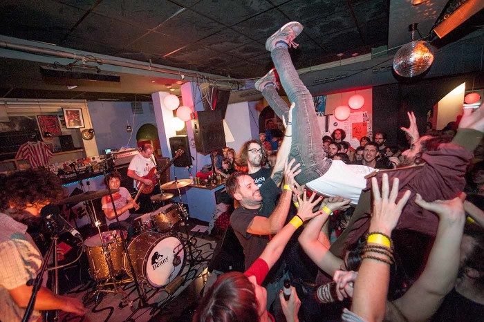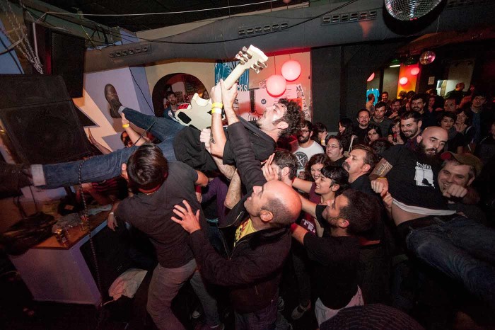 Con un público ya más que entregado, sin parar de hacer Crowdsurfing bolo tras bolo, llegó el momento de los compañeros de sello discográfico de los anfitriones, GREUS y Familea Miranda. Los primeros, también dúo, con una contundencia stoner, punk en la guitarra y batería rozando el sonido épico, y los segundos, la banda catalano/chilena demostrando que su rock experimental puede llegar a un público joven ávido de sensaciones fuertes y extrañas.