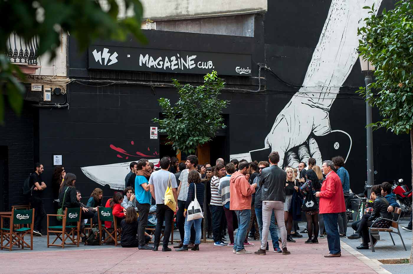 A las 12.00 h. del mediodía todo estaba preparado, con Jose Guerrero en la puerta repartiendo las pulseras al público, la sala Magazine en condiciones (estrenando su espectacular pintura mural en la fachada y con un refuerzo de P.A. instalado la noche anterior que hizo que el sonido de todos los grupos fuera algo memorable), Marcos Junquera en el puesto de merchandising y Pablo Peiró controlando el equipo del escenario y ayudando a montar y desmontar banda tras banda (ellos se lo guisan, ellos se lo comen, eso sí es autogestión), para que poco a poco los ávidos consumidores de música en directo fueran apareciendo.