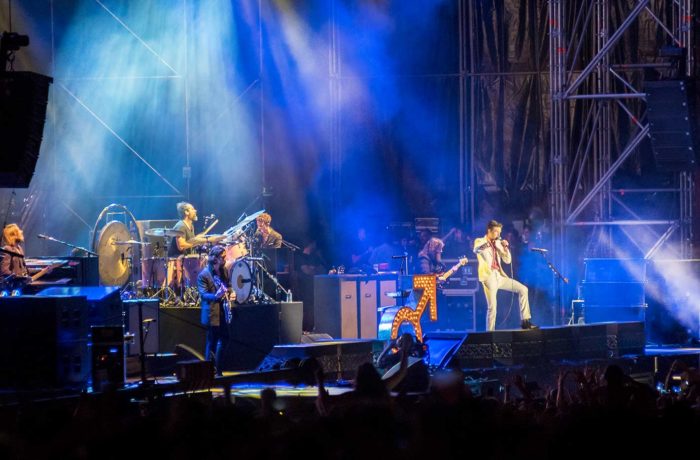 El gran reclamo de la jornada y uno de los principales pilares de esta edición residía en la actuación de The Killers, que este año destacaba por su impresionante puesta en escena. Ya desde el principio sorprendió con una cascada de confeti a la par que Brandon Flowers entonaba el single del último álbum ‘The Man’ que ya para empezar dejó boquiabierto a buena parte de los asistentes. Enfundado en un traje blanco reluciente, impecable, cautivó con su voz y su presencia sobre el escenario a un público entregado ávido de escuchar sus grandes éxitos como ‘Smile like you mean it’ y ‘When You Were Young’ entre otros. Uno de los hechos más emocionantes fue la subida al escenario para tocar la batería en ‘For Reasons Unknown’ de uno de los espectadores que apareció durante todo el concierto con una pancarta pidiendo su oportunidad de ver realizado su sueño de poder tocar junto a ellos. Otra de las sorpresas que nos ofreció su actuación fue la inesperada aparición del cantante y líder de Catfish and the Bottlemen, Ryan Evan McCann, que interpretó ‘Read My Mind’, tema del que ya había hecho una versión para la radio australiana Triple J. Hacia la segunda mitad del espectáculo llegó el esperado hit ‘Human’ introducido por unos mensajes visuales que aparecían en las pantallas indicando el comienzo de uno de los imprescindibles de la banda. Hubo gran expectación cuando el escenario se quedó vacío por unos instantes para dar paso a los bises, momento en el que Brandon volvió a hacer su aparición estelar esta vez con un deslumbrante traje dorado. Así, cerraba el concierto con su tema más universal: Mr Brightside, coreado por una pista incondicional culminando así una actuación más que brillante.