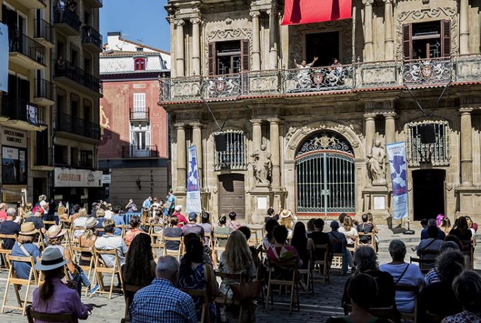 El domingo, última jornada del festival, dio comienzo con el espectáculo del guitarrista Víctor Monge en el Plaza del Ayuntamiento que, nervioso pero repleto de humildad, reconoció que no estaba “tocando bien” después de muchos años sin presentarse ante su audiencia. Tan fuerte fue el aplauso y apoyo del respetable a semejante acto de contrición que los ecos llegaron hasta otra de las enormes ovaciones del festival, la actuación de Chano Domínguez junto a la Orquesta Sinfónica de Navarra. En dos partes bien diferenciadas, una con la orquesta, y otra en formato reducido, Domínguez desplegó lo mejor de su “De Cai a Nueva Orleans” con composiciones originales como “Jacaranda” o “Mi prima de riesgo”, pero también colombianas, blues, seguiriyas, bulerías y hasta un flamenco sketch de Miles Davis titulado “Blue In Green” en honor a los versos de Rafael Alberti. Una performance emocionante con merecidas interrupciones debido a los ensordecedores aplausos de un público que disfrutó con el despliegue alegre de un Chano Domínguez visiblemente emocionado por la acogida.