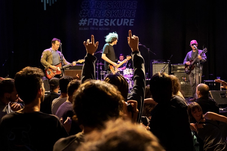 Al tratarse de un evento gratuito (como todos los circunscritos a las celebraciones del aniversario, como los cientos de conciertos del Villa y análogos, como debería ser la cultura en general, popular de la del pueblo), encontramos una gran cola de millennials en el exterior esperando a que los boomers dejáramos aforo libre para el capricho musical de la jornada. Siempre he considerado a Franco un meme (en el mejor de los sentidos) y, dejando de lado que abandonaron los escenarios (“Franco ha muerto”, anunciaron escuetamente a sus Franciscaners) pocos meses antes que sus antecesores, su presencia en el cartel resultaba apasionante. Siempre los he visto como unos Gudari Hilak, el reverso jeltzale de Lendakaris Muertos en clave synth vía Latinoamérica, una gamberrada que acierta más de lo que (premeditadamente) hace aparentar. El pit se puebla de nuevo de los mismos rostros de la despedida acaecida en Shake Bilbao durante (cómo no) Aste Nagusia 2018, para ver cómo dos txistularis acompañan al cuarteto en la subida al escenario, los cuatro de txapela y gerriko rojos con un polo amarillo que servía por igual de homenaje a los Yellow, que de uniforme de dantzari zipaio. “Que vuelva el Creditrans” debería bastar a cualquiera para comprobar el RH del combo. Los de la OTAn trece doce, y Euskotren sigue siendo esbirro de la Barik, imposible no cantar y bailar reclamando un comeback de la tarjeta blanquiazul. Sin respiro, imponen “El Régimen” que será dieta de ayuno intermitente a seguir. Hitazo que reivindica unos mínimos para músicos “amateur” que damos por hechos a diario en el circuito, y aquello es ya la Txitxarro a punto de estallar. Suenan a todo ese indie garagero bailable (The Strokes, contigo empezó todo aunque tuviéramos que tirar de Delorean) de su teens, pero con un punto de parkineo que suelta hostias como Arzallus a todo lo que no huela a DEIA. Un derroche de ejecución sobre las tablas (“hemos ensayado más para este bolo que en toda nuestra carrera”, me confesaron) sustentado por una sección rítmica (ambos también en Mi Buenaventura) tremenda, su setlist dice todo sobre su lírica: puertas giratorias en “Iberduero”, “Winston” para hombres, festivalerdos de “Cabeza de Cartel”, el más cabrón “Siempre Saludaba”, ésta con el virtuoso Sergio Tariskoo a la trompeta como primer invitado. “La Rave del Amor” hace de bisagra del show, que se atasca brevemente sin sonido de guitarra pero Rambo de la sempiterna Crew (¿acaso hay otra como para especificar?) desatasca con la profesionalidad de un reloj Suizo. Ovación para un equipo con el que hemos crecido, en el barrio y bajo ese mismo campanario. “Rivaldo” pone (más) tropicalismo a la receta, “Dictador” no es para nada peor, “MIN de Gloria” un trofeo con forma de palmadita en el hombro. ¿Qué es Belako? Con el segundo convidado se pasan la memeada, subiendo a Deu WAS para “Neoliberal” y sus “discoteca sí, hospital no” para bailar y bailar con los Carolina Durante del Botxo hasta “Canción para Cerrar”, el puto Antzoki o el antro que se tercie, pero pintxo en La Tortilla, Vladimir y a dormir como Santa Trinidad del Fin de Farra. Esta farra termina con el percusionista Parsito del Norte (Esteban SUA) exprimiendo con rascador, maracas, y lo que se le ponga por delante, el maracuyá de “Sumito en el Bertis” sobre una ensalada tan sorprendente, como refrescante. Gora Franco!!