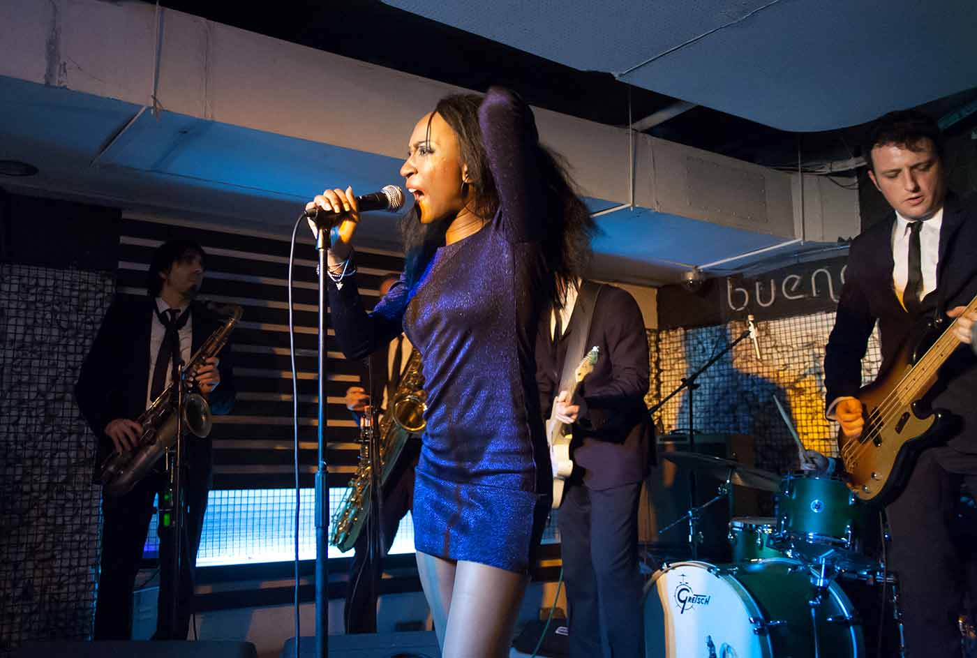 Y esa llama tiene un nombre, y es Koko Jean Davis, la vocalista del grupo. Se trata de una mujer con una voz espectacular, que emociona en los momentos más profundos y enciende los ánimos en los más explosivos. Que brilla igual cuando tiene que atacar un swing, que cuando se tira a por un blues o un rock’n’roll. Koko además es una showoman excepcional: una fiera escénica que se come el escenario y la sala entera. Un torbellino de sensualidad desatada, que no para de jugar con los músicos y con el público. Cuando ella pide que el público grite, todos van a gritar. Y si quiere que la gente dé palmas, pues se dan palmas y nadie se resiste.