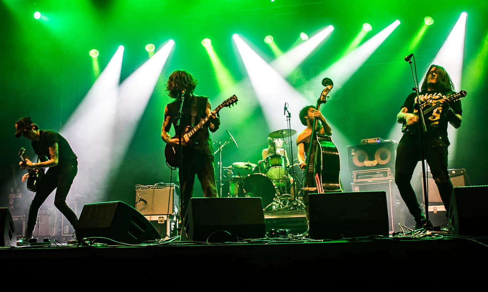 Cronológicamente (no podía ser de otra manera) salió al escenario un grupo que dio gusto ver disfrutar tanto de su música, del público y del momento: Los Brazos (foto inferior). Este virtuoso power trio ejecutan un sonido entre el blues rock con tendencias al country e incluso el rock duro de Motörhead. El público comenzó estático mientras Txemi al bajo se marcaba un bass line espectacular y el drum beat completó el círculo sonoro fusionándose con la voz desgarrada de William y coreografías constantes. Gracias a esto la audiencia se animó pidiendo más temas al grupo.