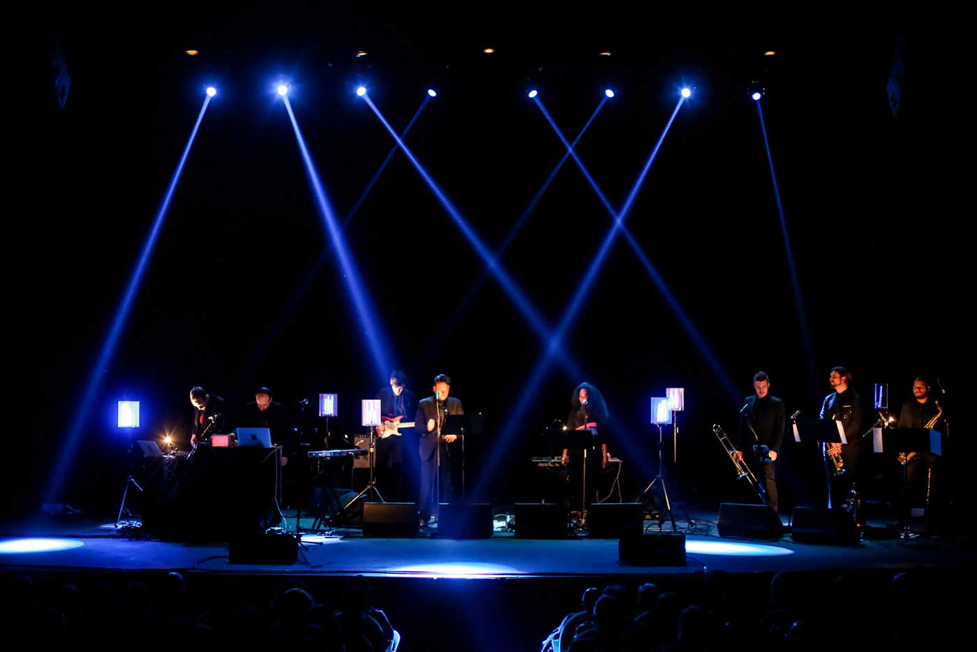 Al día siguiente Tremenda Trementina inauguraban la jornada en la Colegiata. Parecía que la pequeña iglesia no era el lugar idóneo para recoger los maullidos de su último trabajo “Sangre Pop”. En algún pub escaleras abajo quizás todo hubiera encajado mejor. Después fue el turno de Noise‘n’Confusion. Las canciones de los asturianos, a medio camino entre el pop y otros elementos cercanos al consumo popular, digamos que se dejaron sonar sobre el altar, que ya es bastante. A pocos minutos y metros, en el Teatro Jovellanos la música de HUIAS fue una gran nube oscura, potente, sensual y retorcida que mojó a muchos y bien a gusto. Lo de trasladar escenas de rave mañanera a un teatro de forma tan excepcional sólo podría conseguirlo alguien como ellos. Obviamente, los aplausos al final fueron bien merecidos. Después salía a escena el británico Matthew Herbert (en la foto). Esto ya son palabras mayores. Él es el genio de los mil botones. El líder de la gran orquesta moderna, que crea canciones con sonidos tan dispares, tan orgánicos y tan artificiales, como una bolsa de patatas fritas o un músico soplando tras una trompeta. Y precisamente 11 músicos y un juego de luces sobre la escena le acompañaron esa noche en el teatro, donde Matthew explicó su música en clave de humor. Un humor ácido que también traslada a canciones, llenas de capas que se expanden como una gran masa. Este es el milagro de la música actual y su directo fue una gran muestra de ello.