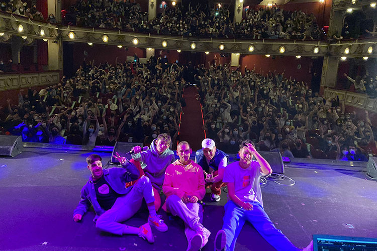 “Después de este concierto, tengo la sensación de que el grupo solo puede ir para arriba”. Así de claro y de optimista se mostraba Delgao, miembro de Go Roneo, después del concierto del pasado sábado. Las razones son evidentes: un sold-out de 700 fans en el Teatro Calderón de Madrid. Sesentay6, otro miembro de la banda, alucinaba poco después de terminar el concierto: “Se saben las canciones mejor que nosotros”. Se creó así en el teatro una comunión entre artistas y público muy poco habitual. En los conciertos que he reseñado para Mondo Sonoro en los últimos tiempos, pocas veces he visto una identificación tan potente a ambos lados del escenario. Go Roneo saben que su público es fiel y que han conseguido ganarles con su mezcla de pop rock y urbano, espontáneo y sin complejo alguno.