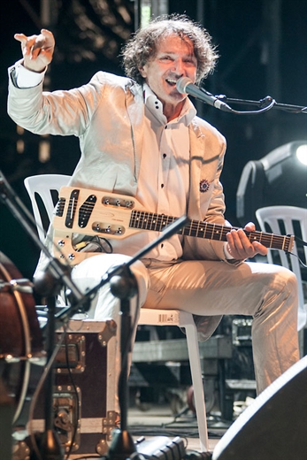 Los conciertos en el escenario principal empezaron el jueves (con un retraso de hora y media) con dos bandas nacionales, de Madrid y cercanías. Primero fueron Sin Konzienzia quienes pusieron a bailar a las primeras personas que entraron en el recinto. Tras ellos, Spin Te Kú. Ambas formaciones levantaron las primeras nubes de polvo en las zonas cercanas al escenario con sus mezclas explosivas y enérgicas de ska-reggae-punk-balkan, dejando el ambiente caldeado para el serbio Goran Bregovic (en la foto superior). Al grito de “¡si no os volvéis locos con esta música es que no sois normales!” empezó a toda velocidad con el incendiario “Gas Gas” y, claro, la locura se desató. Se presentó con la version reducida de su Wedding And Funeral Band, quienes fueron de lo más eficaz. A pesar de todo lo que se diga de él, Bregovic es el artista que más ha popularizado las músicas de los Balcanes en todo el planeta. Sumemos a eso que su repertorio es infalible, alternando inteligentemente temas emotivos con auténticos momentos de desenfreno rítmico. El tramo final con la alocada “Hopa Cupa”, el clásico “Caje Sukarije” o el vibrante “Yeremia” fue apoteósico, alcanzando la demencia total con “Bella Ciao” y “Kalashnikov”, en la que como siempre hizo gritar al todo el público.