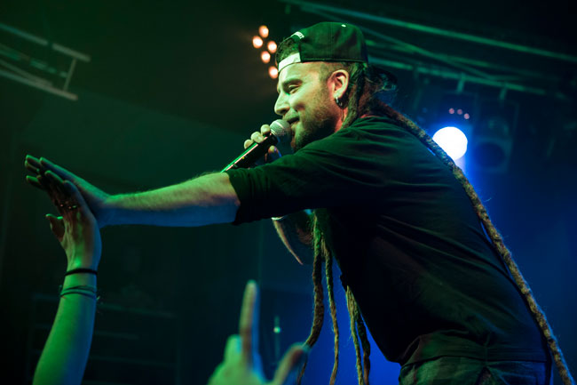 Coincidiendo con las fechas navideñas, el domingo 27 llenaron y el lunes 28 se esperaba lo mismo de ellos. La sala estaba llena, las dos plantas estaban atestadas de gente, mucho público joven desde los 14 hasta los 20 años pero también gente de mas edad, los menos. En la primera parte Leo “El Charrua” calentaba el ambiente en la sala con hip-hop bien hecho y se le veía con muchas ganas en escena, perfecto para ir animando al personal que ya desde el principio comenzaba a corear y responder al Mc.
