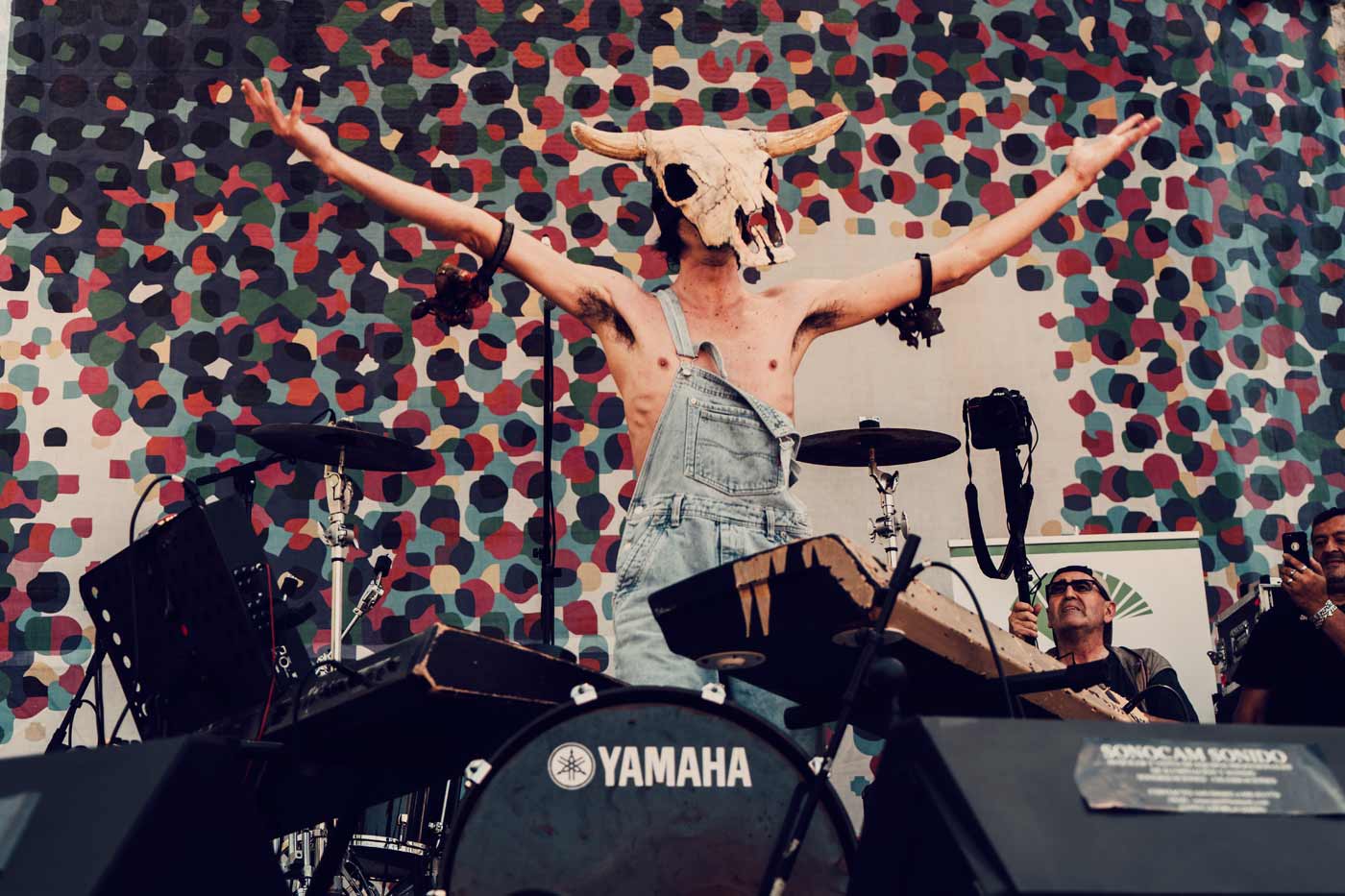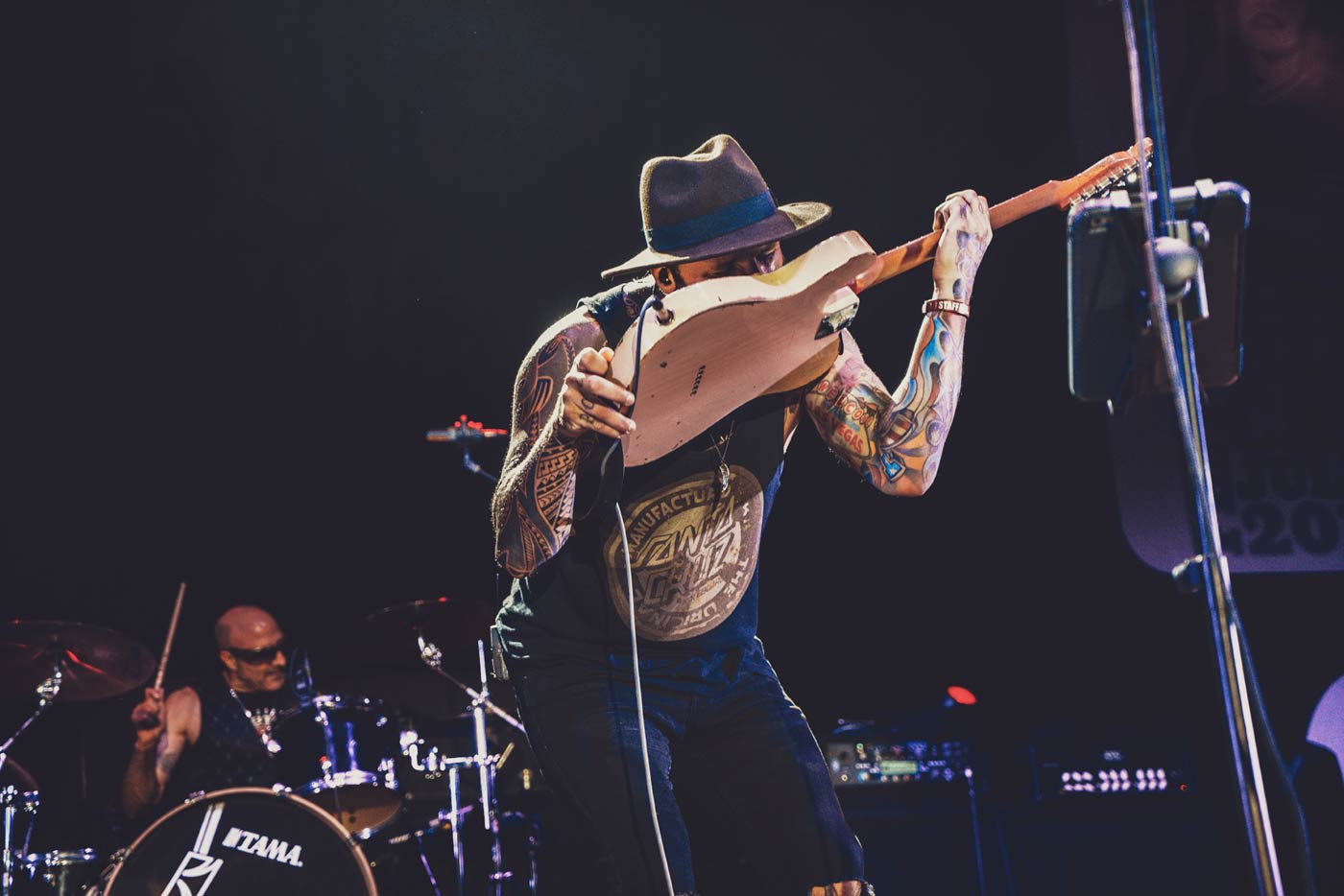 El vencedor del Blues Battle 2018, Alv McMartin, abría la mañana del sábado con esa suerte de autor folk entendido al modo estadounidense. Tras él, Carlos Moreno (Kid Carlos) llegaba al escenario para demostrar su buen hacer con clásicos del blues y otros estilos como el jazz, rock y el funk marinados con temas propios que tuvieron una gran factura en directo. El público abarrotaba la plaza en espera de uno de los platos fuertes de la mañana. Nadie quería perderse al misterioso Vurro en directo. Ataviado con su característica cabeza de vaca cuyos cuernos se encargan de aporrear los platos a sus dos lados, el avilés demostró que él solo basta y sobra para dar un show espectacular. Este one-man-band consiguió dejarnos con la boca abierta con cortes como El Toro Raúl o Rock y Vaca. El bombo a sus pies, cada mano en un teclado y acompañado por un sintetizador que hizo las delicias momentáneas de los menos ortodoxos, el resultado fue una mezcolanza bizarra que merece la pena experimentar. Tras recuperar las formas y tomarnos un merecido respiro, Pápa Júlu volvía al escenario de la plaza por segundo año consecutivo para cerrarlo “dando la lata”. En la banda liderada por Pedro Peinado los instrumentos al uso están desterrados. En su lugar, las AOVE Can Guitars (latas de aceite de oliva) dan ritmo a sus temas, tanto propios como covers. Nos pidieron nuestra mejor sonrisa para ser protagonistas de un videoclip en directo del tema Volviendo al Sur. Los de la capital jienense cerraron su setlist con uno de los temas ya convertidos en himno del festival: Thunderstruck de ACDC al grito de Cazorleans.