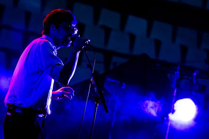 La primera de esas variables es, sencillamente, apasionante e imprevista. Guillem Gisbert, aquel cantante espigado y estoico tiempo atrás, es hoy día una mezcla perfecta entre Matt Berninger (The National), elegancia y cable de micro al hombro, Julio Iglesias, mano al bolsillo y gestos casi censurados, y Jaume Sisa, cuentacuentos profesional. Fallando menos notas que los tres anteriores juntos.