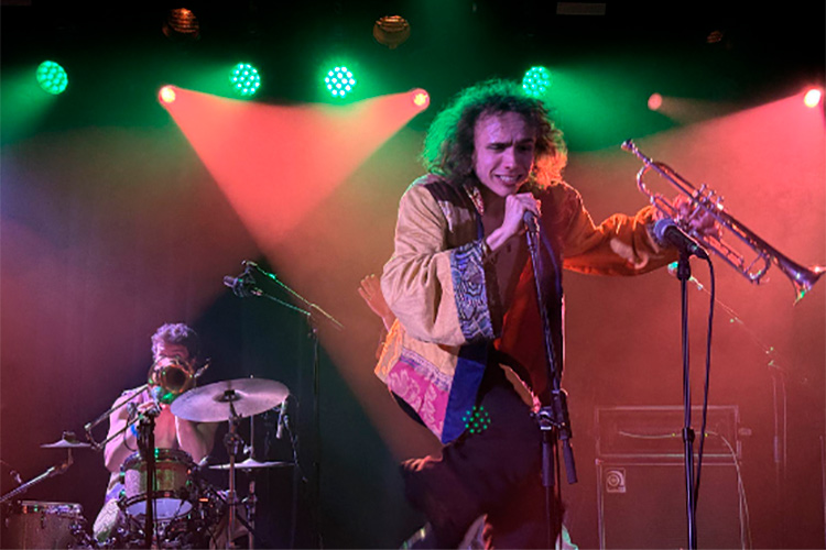 En este juego de encajes deliberadamente desordenado, todos encuentran su espacio. El batería deja su asiento para coger el trombón, el cantante pasa a la trompeta, el saxofonista cambia al clarinete. Un esbozo de coreografía en el que también hay lugar para la crítica social, como cuando entonan “Free Palestine” sobre las notas de “Hava Nagila”, un tema tradicional asociado históricamente a la celebración del sionismo. Su último single “La bomba inteligente”, que interpretan justo después, insiste en esa misma dimensión política: “Ma noi siamo italiani, brava gente, Che vendiamo le armi, qua nessuno si arrende.”, una referencia evidente al debate surgido tras la venta de armas a Israel por parte de empresas italianas.