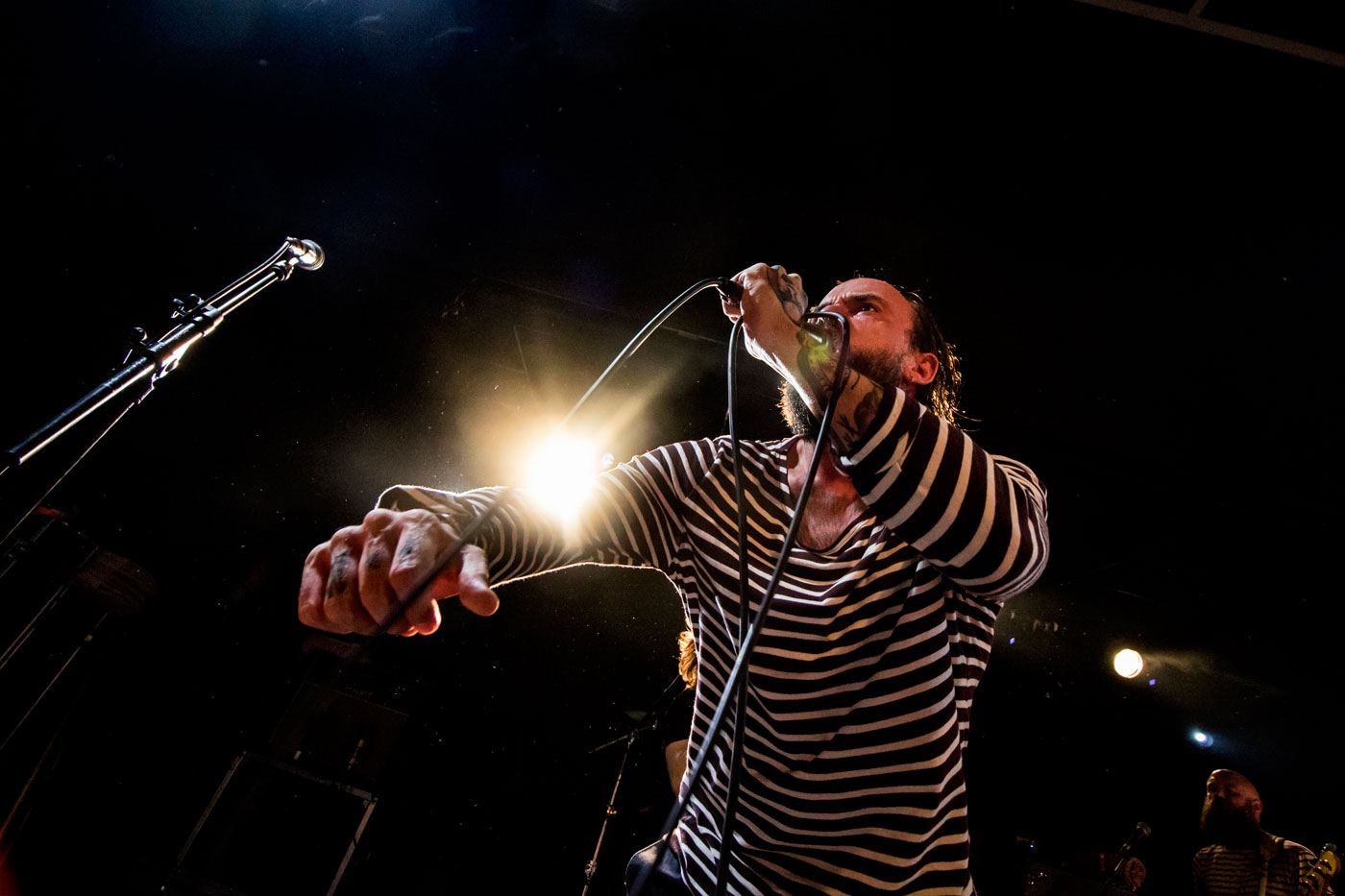 Cuentan que la actuación de Madrid estuvo a punto de cancelarse por motivos de organización, algo que posiblemente provocó que los británicos salieran al escenario en Barcelona con las pilas cargadísimas y entregados desde el minuto cero. Ahora bien, seguro que también sumó que centenares de personas se dejasen la garganta ya a los pocos segundos de que Idles arremetieran con “Colossus”, abriendo una noche que se me antoja uno de los mejores epitafios para el año que está a punto de acabar: ahí fuera está todo hecho una mierda, así que disfrutemos aquí al máximo… y eso de todos a tomar por el culo que les decía unas líneas más arriba. En la audiencia, dicho sea de paso, no existía un único perfil. Obvia e inevitablemente, había unos cuantos ingleses borrachos, pero también chicas –muchas chicas–, rockeros relativamente auténticos y mucho indie, todas y todos arremolinados en una maraña de brazos y piernas que iba y venía descontroladamente. Se contorsionaban casi tanto como los dos guitarristas del grupo. Al final todo influyó y sumó de cara a que Idles pusieran la sala patas arriba. Los astros se alinearon en una noche en la que todos los elementos encajaron a la perfección. Barcelona echaba en falta un concierto caótico tras tanta corrección, tanto grupo anodino con ínfulas de comerse el mundo, tantas reglas absurdas… e Idles reclamaban el trono de grupo que no acepta mierdas y que conoce las claves para, precisamente, ofrecer conciertos caóticos.