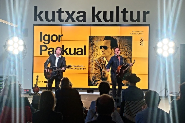 El artista recuerda su alegría por actuar en su ciudad natal, pese a haberse criado y seguir viviendo en Oviedo aún a día de hoy. Viene a presentar su trabajo en solitario que cuenta ya con tres discos de estudio: "Equilibrio Inestable" (2011), "Tierra Firme" (2015) y "La Pasión según Igor Paskual" (2019). El concierto sorprende porque desde el principio empieza a explicar el proceso composicional relacionando los acordes mayores, menores y disminuidos con ejemplos de Oasis, Los Beatles o Morricone. Las explicaciones sencillas de como un acorde mayor puede transmitir alegría en un estribillo, llegan al público rápidamente, que comienza a aplaudir haciéndose cómplice al instante. Recuerda a los Beatles haciendo una intro a la canción “Norwegian Wood”, donde precisamente hacen lo contrario jugando con acordes menores en el estribillo. Igor elogia la incuestionable aportación de éstos a la revolución musical que supuso en su época y que sigue vigente tras más de medio siglo. Tras !Pasos de Baile!, !Bipolar! y !Napalm!, Angel Miguel deja su Gibson y coge la mandolina para comenzar a tocar “Volver”, una composición perfecta de sensibilidad y energía que hace saltar la chispa en la sala. Los coros afinadísimos de Angel y su dominio en los punteos y acompañamientos hacen emocionarse al público.