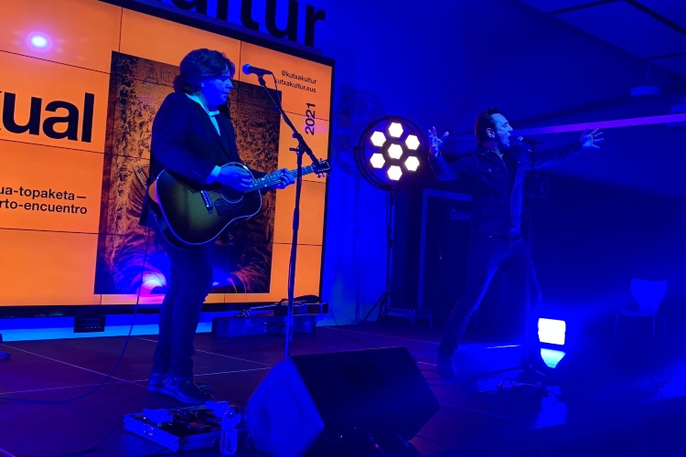 La fría tarde del sábado invitaba a salir de casa. Unos días cada vez más largos y los rayos de sol que van asomando tímidamente hacían agradable asomarse a la terraza del edificio Tabakalera, decorado con bombillas de baja intensidad, creando un ambiente cálido que contrastaba con la temperatura real. En el interior, luz natural a la llegada, con sillas blancas perfectamente distribuidas y turnos de entrada respetando escrupulosamente las medidas de seguridad impuestas para las actuaciones pandémicas.