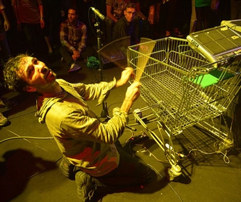 Filastine (en la foto)z es igual pero con los ritmos de baile, tanto electrónicos como populares. Es una mezcla de todo con poderoso sentido dentro de un artista que se proyecta como idea de vida global: compromiso ético a través de la música, y al revés. Como siempre, al final la anécdota (el famoso carrito de la compra que sirve como elemento percusivo y que apenas emplea en el show) no oculta la sustancia: el recorrido por decenas de beats, desde el dubstep más pegado a la actualidad hasta reggae y el dub de siempre, sin olvidar referencias paquistaníes y africanas, un recorrido que buscaba el mismo efecto de las danzas ancestrales repetitivas: llegar a un trance que arrancó a los diez minutos de actuación y tuvo al público bailando en torno al proyecto sin levantar el pie del acelerador, contagiado ya por ese efecto Keroxen que rompe las barreras entre audiencia y artista.