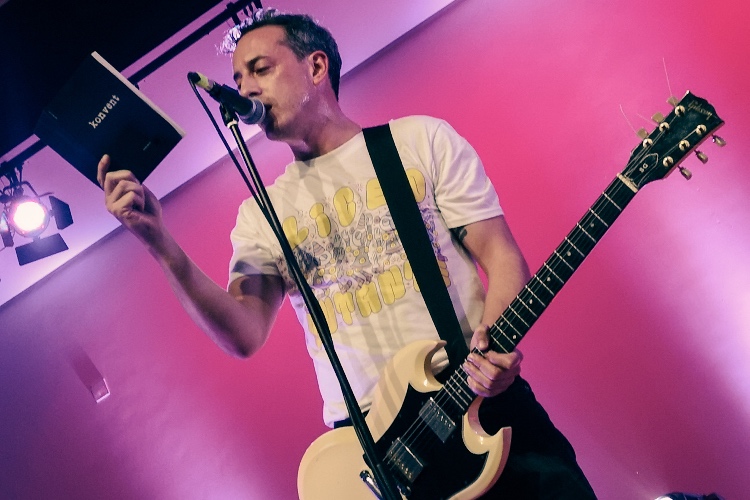 Aina eran una banda de Barcelona formada en 1995 y que se separó en 2003. Como comentaron después, Artur y Wences se conocen desde hace casi cuarenta años, y el estatus de culto que alcanzaron con su grupo anterior, sumado a la impecable carrera de Nueva Vulcano hasta la fecha, hacía presagiar un sold out, posiblemente con gente quedándose en la calle. Me da la impresión de que esto pudo venir motivado por una falta de promoción que me hizo echar en falta a muchos aficionados de los Nueva que conozco dentro de los límites municipales, pero aún así, la entrada superó holgadamente el centenar de personas. Centrando el bolo en su última referencia ("Ensayo", editado en 2020 por BCore y La Castanya, sello del batería Albert junto a su hermano Joan), Nueva Vulcano te hacen sentir como en su local en todo momento. Tocando al once, y con la voz encontrando con esfuerzo su sitio para dejarnos disfrutar de esa lírica tan particular (que adoptaron al formar el grupo de las cenizas de Aina y pasar a cantar en castellano), parece que estuviéramos en un ensayo entre amigos. Esa sensación de complicidad se vio refrendada en la perenne sonrisa de satisfacción de Artur y en sus interacciones con el respetable entre los cuatro bloques bien definidos que formaron su concierto. En ellas, subrayaron la cercanía de una banda que lleva décadas levantándose a las cinco de la mañana para preparar unos bocadillos que comer en un área de descanso, de camino a un bolo a cientos de kilómetros; que reivindica ser cultura, una cultura de la que también forman parte el Liceo Mutante de la camiseta que lucía Artur y Bonberenea, su alojamiento esa misma noche y escenario los 2 siguientes días. Las palabras resultaron ser tan importantes esa tarde como los son en unos himnos que por fin consiguieron hacer reaccionar a un público que se fue desvelando como jóvenes niños y niñas de toda la vida, viejos hombres y mujeres de verdad. Cogimos velocidad en las rotondas y no paramos hasta saldar la deuda que todas teníamos con el baile, aunque fuera con una butaca como pista. Bajo y batería sonaron como uno solo empujando los temas hasta un final EMOcionante, siendo su frontman y guitarra canalizadores de esa energía que contagiaron a todas las presentes, con un Wences en segundo plano seguramente debido a una ligera cojera en la que nos fijamos cuando abandonó el escenario. Dieron las gracias por el edificio y se fueron dejando sonrisas invisibles por toda sala.