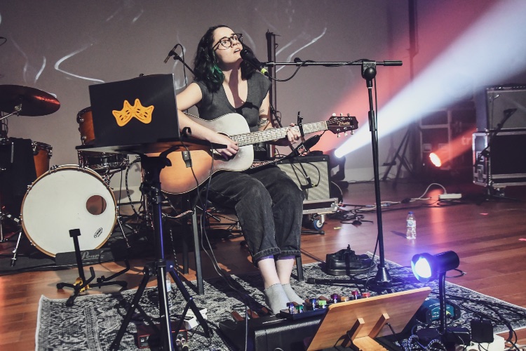 Ante una audiencia más nutrida desde el principio que la semana anterior (la reapertura de la hostelería también resulta factor a valorar en cuanto a media de edad y asistencia), Eneritz Furyak hizo acto de presencia tal y como había terminado su prueba de sonido unos minutos antes. Pasito a pasito, con esa timidez que siempre la acompaña sobre las tablas, con ropa de andar por casa y unas gafas que nunca le había visto usar en sus actuaciones, se instaló en el centro de la alfombra que servía de refugio a toda la cacharrería de la que haría uso después, y pidió permiso para descalzarse y comenzar. Con esa alfombra como atalaya, nos hizo sentir invitadas a entrar en su hogar, quitarnos los zapatos y sentarnos junto a ella a disfrutar de la intimidad de las canciones que forman su próximo disco. Precisamente la primera fue la homónima "Emadan", en la que nos fijamos que despojarse del calzado tenía otro motivo más allá de la comodidad, porque un sintetizador de pedales la acompañó durante todo el concierto sirviendo a modo de banda. Mediante él iba tejiendo atmósferas que vestían de post ese folk tan intimista y a ratos oscuro que practica la irundarra, con ese sonido tan característico del instrumento, que lo asemeja a un órgano de iglesia y que nos hacía sentir como en una homilía en la que el gospel se confunde con el blues. Las pausas entre cada tema (en las que explicaba vergonzosamente el significado de las letras o anécdotas vitales al respecto) se fueron volviendo una charla entre amigas con la que, como ella mismo confesó, trataba de romper ese muro ficticio entre músico y público siempre presente, pero ahora exacerbado por la falta de expresión en los rostros de la audiencia. Las palabras enseguida pasaban de nuevo a ser susurro musical, sirviendo de catarsis para parecerse a una PJ Harvey más desnuda y menos descarnada, compensando el equilibrio mediante el peso de las letras y el significado que les aporta en el contexto del momento. Su chorro de voz (más o menos acompañada musicalmente según el momento) se hizo ariete conforme avanzaba el bolo y llegó a despojarse de las gafas y de la seguridad de su alfombra (previa petición de permiso por nuestra parte de nuevo) para acabar de derribar toda barrera y emocionar a los presentes con un puñado de canciones que son representantes tanto de Furyak artista, como de Eneritz persona.