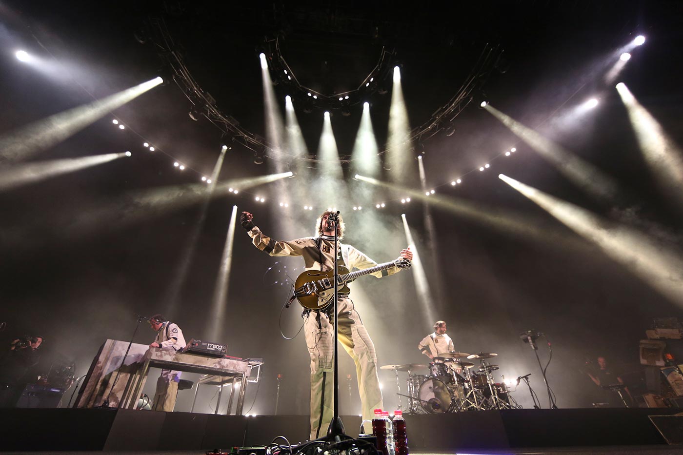 La banda saltaba al escenario ataviada con trajes de astronauta, que mantendrían durante las tres primeras canciones siguiendo el hilo narrativo del video proyectado, en un viaje espacial ficticio con invitados de lujo al servicio de la interacción con el público. Joaquín López y Miren Ibarguren, luego también Kira Miró y la guinda personificada en Raphael, para la despedida añadieron entretenimiento a un show dinámico y sin pausas, durante el que propusieron diversos juegos al público a través de una aplicación móvil con la que incluso pudo votarse en cierto momento la canción que la banda tocaría a continuación.