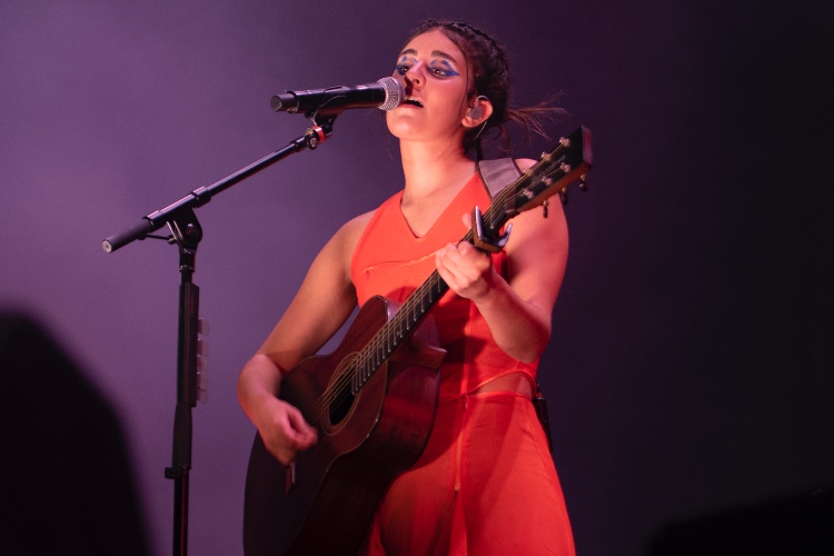 Las largas colas que abrazaban el círculo del estadio de fútbol Reale Arena vaticinaban algo realmente grande. Cuando habíamos llegado a la hora oficial del comienzo del concierto (22:00) aún seguía el reguero de aficionados ansiosos por entrar y posicionarse en un recinto legendario que antaño vivió algunos de los conciertos más miticos de Euskal Herria. Se apagan las luces con media hora de retraso hasta que por fin saltan los cinco músicos a las tablas: El imprescindible Iker Lauroba a la guitarra, Garazi Esnaola aportando teclados y mucha magia, Julen Barandiaran (bajo), David Gorospe a la batería y la protagonista Izaro Andrés (Mallabia, 1993). La elegida para abrir el recital de dos horas y veinte temas fue la deliciosa “Er(h)ori” del mejor disco suyo hasta la fecha: “Eason” (2018).