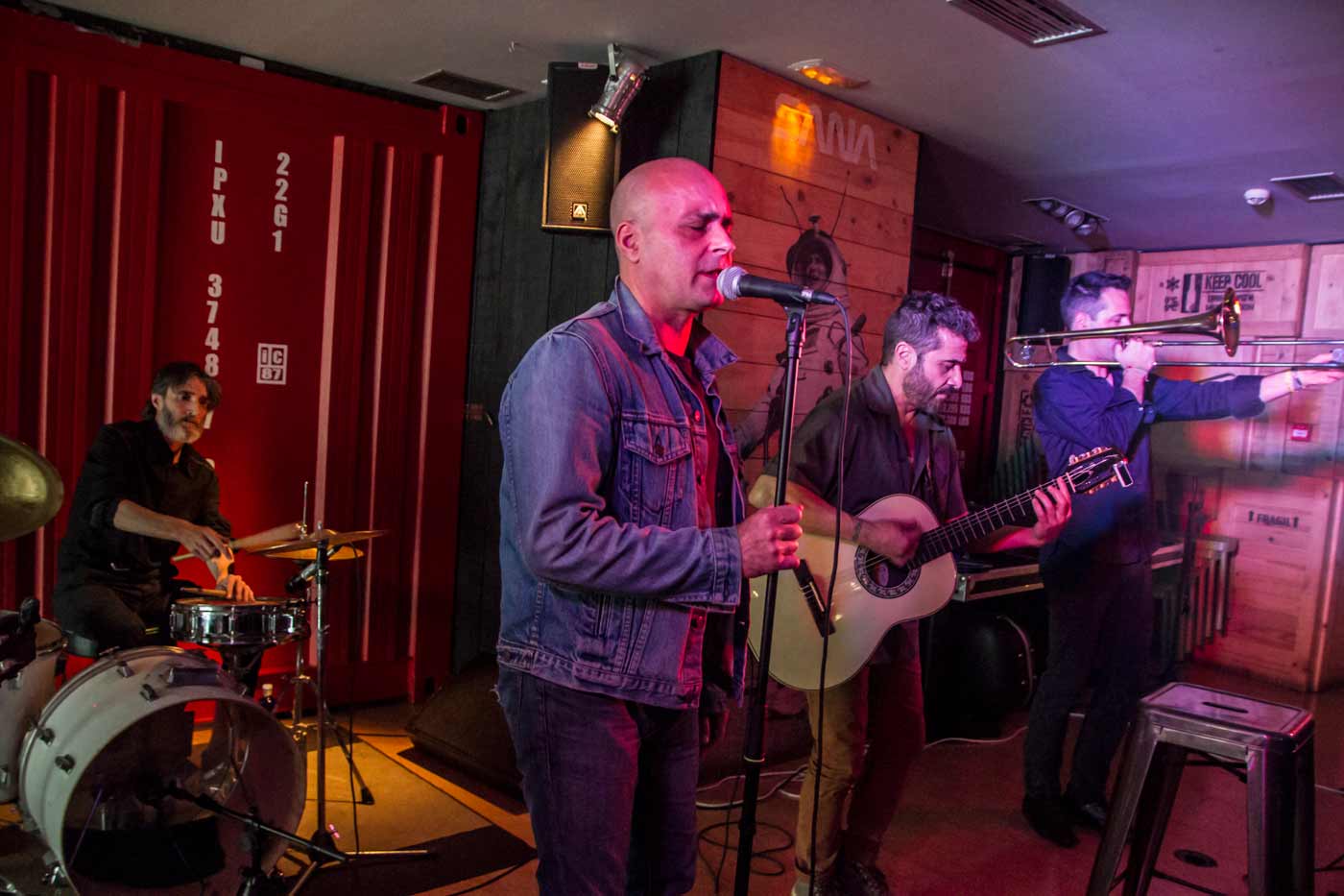 Domingo gris y tristón al mediodía en el que la música del nacido alemán Javier Corcobado ahora residente cerca de Gernika, prometía ser la banda sonora perfecta, acompañada de un marianito o un vino blanco. Y el crooner pasional, personal y experimentador estuvo a la altura de las circunstancias. Comenzó el set saludando a la primera fila dando la mano uno a uno creando un aire de cercanía en el ambiente.