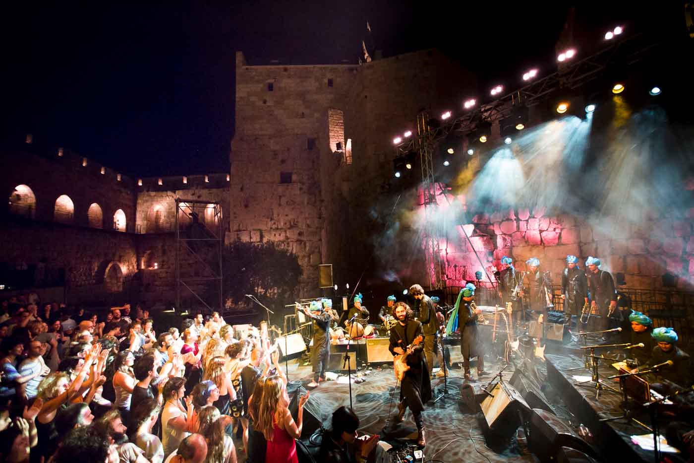 Jerusalén es la ciudad de la discordia, mucho más que un amasijo de piedras de color crema-café; el punto clave de inicio de la Segunda Intifada y quién sabe qué más: sólo hay que ver la nueva trifulca el domingo pasado entre musulmanes y el ejército israelí. Sin ir más lejos, el pasado año el festival tuvo que cancelar el 50% de su programación por los bombardeos israelíes a Gaza y el clima belicoso en la ciudad, a causa de la ocupación. Jerusalén es lugar de conflictos religiosos, políticos y culturales. Cuando el JSMF se autodefine como “el único escenario posible para diálogos imposibles” –así lo expone Naomi Bloch Fortis, directora ejecutiva)– está en lo cierto. ¿Dónde sino iba a verse esa locura por nombre “Junoon” que el compositor Shye Ben Tzur y Jonny Greenwood (Radiohead) han inventado junto a una decena de músicos indios? En el escenario principal, entre paredes de miles de años de historia en la Torre de David, y donde tendría lugar el cierre del festival con bandas tan variopintas como la electrónica orgánica y de ritmos orientales de Cut ‘n’ Base o el trance de Tribal Dance, tuvo lugar un espectáculo de color y baile explosivo. Imaginen la fuerza de trompetas, castañuelas y percusiones, junto a la voz tántrica y persuasiva de Ben Tzur. Imaginen también, a un lado y sin demasiados alardes, a Greenwood. Soso y desubicado. A Max Romeo (mítico rastafari sesentón), en cambio, no le acusarán de desubicado: Jerusalén es una ciudad ragga por excelencia, ¡Mount Zion! El jamaicano llenó de meneos sandungueros el graderío.
