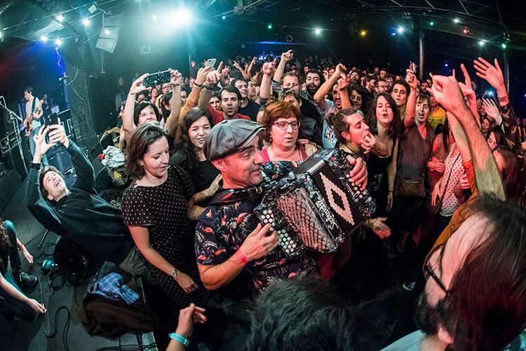 Llegarían después las infalibles “El Joglar”, “Loco & Motora” o “Petit Rumbero”, y entre ellas esos temas nuevos como “Cantinela”, que se decanta hacia la cumbia, “Fa Bon Temps”, con ecos tex-mex o “Leila”, de aires árabes, pero a destacar “Mariatxis Trance” de ritmo trepidante. A pesar de que la banda suena más desnuda, solo son voz, acordeón, bajo, guitarra y batería, siguen siendo igual de eficaces. Aunque es cierto que con ese clásico popular que es ya “Volant”, invitaron al escenario a Pep Terricabras (batería en LTKF), pasó Rambo a las percusiones y subió la temperatura. Tanto que hasta Garriga se bajó a tocar entre el público y se montó hasta un pogo con el final de la canción. Pero es que después hicieron, quizá la canción más encantadora de LTKF, “Flor de Primavera”, incorporándose también Muchacho a la guitarra y Flor Inza a las percusiones, convirtiendo ese momento en el punto más emotivo de la noche. Uno de esos temas nuevos del Ep, “Ballem!” una especie de valls acelerado fue el idóneo y teórico final. Pero el bis fue aún más celebrado con el icónico “Yo Soy”, la “Cumbia Infierno” y una versión incendiaria del “Blood&Fire” con un Madgid desatado a la guitarra.