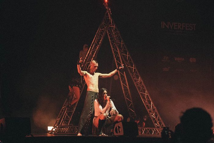 La propuesta da comienzo, como no podía ser de otra forma, con ese “bodhitale” para abrir las puertas al alma que se apoderará del cuerpo de Lara durante ya todo el concierto. Subida a un columpio/bicicleta y balanceándose hace explotar ahí la locura que empujará el resto del show. Porque, no hablamos solo de locura de la protagonista, sino la de un público entregadísimo desde que el primer reflejo de Judeline se muestra sobre el escenario. Tras ella, la “posesión” se materializa con “angelA” y la dominación se completa con ese diálogo frente a Héctor Fuertes que se encargará del lado más performático del show dejando que la presencia de “él” entre en su cuerpo al igual que lo hizo Rusowsky en el álbum. De esta forma, lo que casi se podría denominar como el primer tríptico de “Bodhiria” se cierra con una “INRI” a la que por fin vemos a lo grande con todo lo que necesitaba alrededor para brillar. Coros infinitos por parte del público y danzas religiosas agarrada fuerte de la mano de todas las que comprenden el gran dolor de Angel-a.