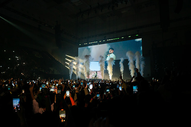 Sin duda el concierto de Dellafuente en Granada se había convertido en la cita del año, por lo menos la de los records, y mira que en este 2022 hemos hecho saltar la banca varias veces. Pues así es, como el año que despedimos, 22.000 entradas vendidas en minutos, tres sold outs en el Palacio de los Deportes, público venido de toda España y colas de fans guardando sitio días antes de abrir puertas. El granadino no se ha prodigado mucho en directo, nada en el último tiempo, tampoco se expone demasiado a los medios y las redes sociales y eso lo ha convertido en un artista de esos del ahora o nunca. Comentaba en la previa que el espectáculo superaba con creces sus expectativas, porque sí, porque ahora sí tenía ganas de subirse al escenario.