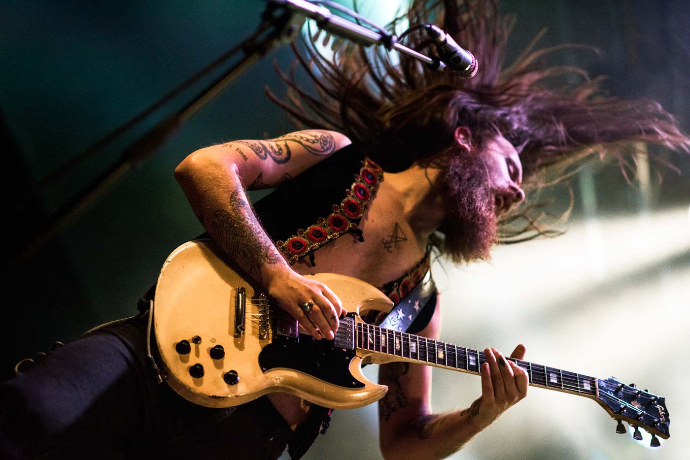 Otro más de su debut, posiblemente "Forgotten past", nos devuelve al stoner para desembocar en "Doomsday machine", la eufórica y mastodóntica joya de la corona, con un estribillo matador y una voz mágica. El altísimo bajista Simon "Dragon" Bouteloup, el único miembro no original de la banda aunque ya lleve cinco años en ella, creador de una masa sonora robusta e imperiosa, es una pieza clave en todo este conglomerado sonoro y su presencia escénica, arrolladora. Y así, se despidieron con la rápida "Into the night", con su ritmo entrecortado y estribillo de Stadium Rock, y volvieron rápidamente para los bises.