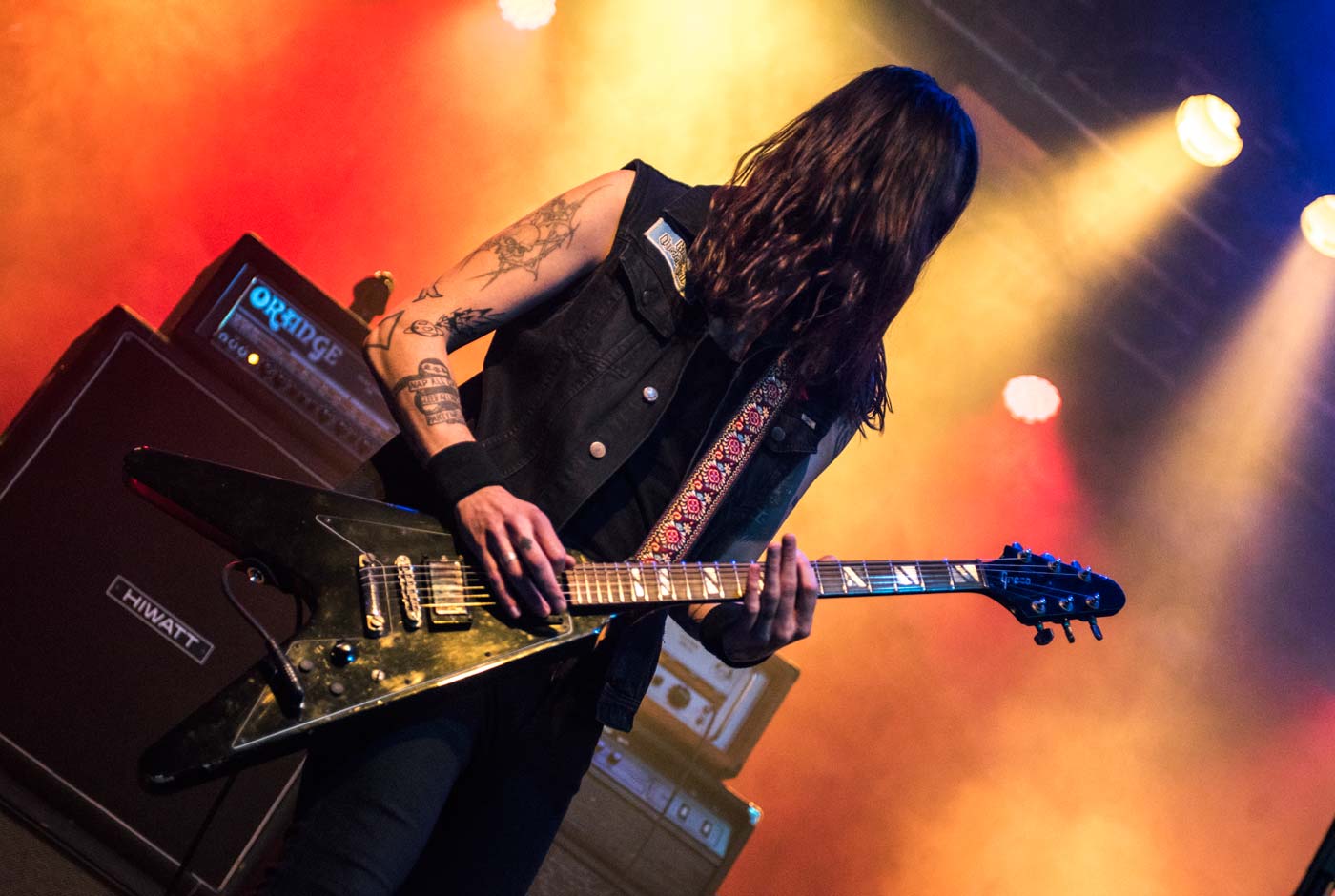 Saltaron sin demora los suecos Monolord (foto inferior) y construyeron un muro omnipotente y supremo nada más enchufar sus instrumentos. Lo primero que hizo el guitarrista y cantante Thomas V. Jäger fue pisar un pedal para crear una masa de sonido que fue cogiendo forma a medida que desarrollaban una atmósfera opresiva, formidable y embriagadora. Y ahí es donde llegamos a la clave de este grupo tan denostado por público y crítica en su anterior visita -marzo- como teloneros de Black Label Society en Gasteiz: Una vez sondeados y tentados por su universo, donde las individualidades y exposiciones se sacrifican en favor del todo, no hay marcha atrás. O te rindes irremisiblemente o te quedas fuera. El batería Esben Willems castigaba con dureza parches y platos, con una ejecución aparentemente sencilla y precisa, siempre con la contundencia que este tipo de propuesta requiere. Es el metrónomo lento y pesado, apoyado por Mika Häkki, con sus notas de bajo al límite de los tonos graves, siempre dinámico y poderoso en sus movimientos.