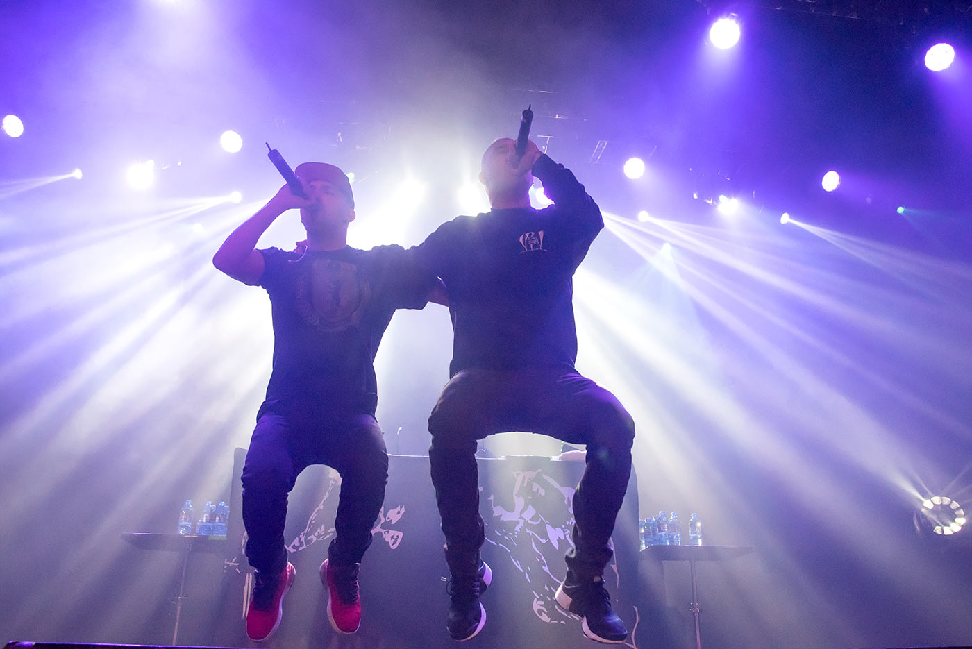 Después de la intro y un par de temas de su último disco, llega la primera ronda de clásicos, con un Pura droga sin cortar de los Doble Uve, su banda de siempre, sin cambiar ni un ápice de ese puro, potente y crudo hip-hop, y un poco más tarde, Kase.O se vuelca con un Chúpala que el respetable corea sin ningún pudor. Pero esto es hip-hop, y puede pasar cualquier cosa, como en la historia que casi da por finalizada la primera parte del show, antes de los dos bises que el de Zaragoza se marcó: Mazas y catapultas, un tema que, como Momo comentó, está llamado a ser uno de los temazos de esta época en solitario de Jodeculos Ibarra. Tras la salida del escenario para una pronta vuelta, llegaron las sorpresas en forma de invitados, el primero, Sho-Hai, hermano de armas en Violadores del Verso, con el que recordaron ese Vivir para contarlo que figura en la historia española del rap, y que, junto con el segundo invitado de la noche, Xhelazz, con el que los cuatro MCs hicieron uno de los temas de ese El Círculo con el que el hip-hop en castellano gira por la geografía española: Viejos ciegos.
