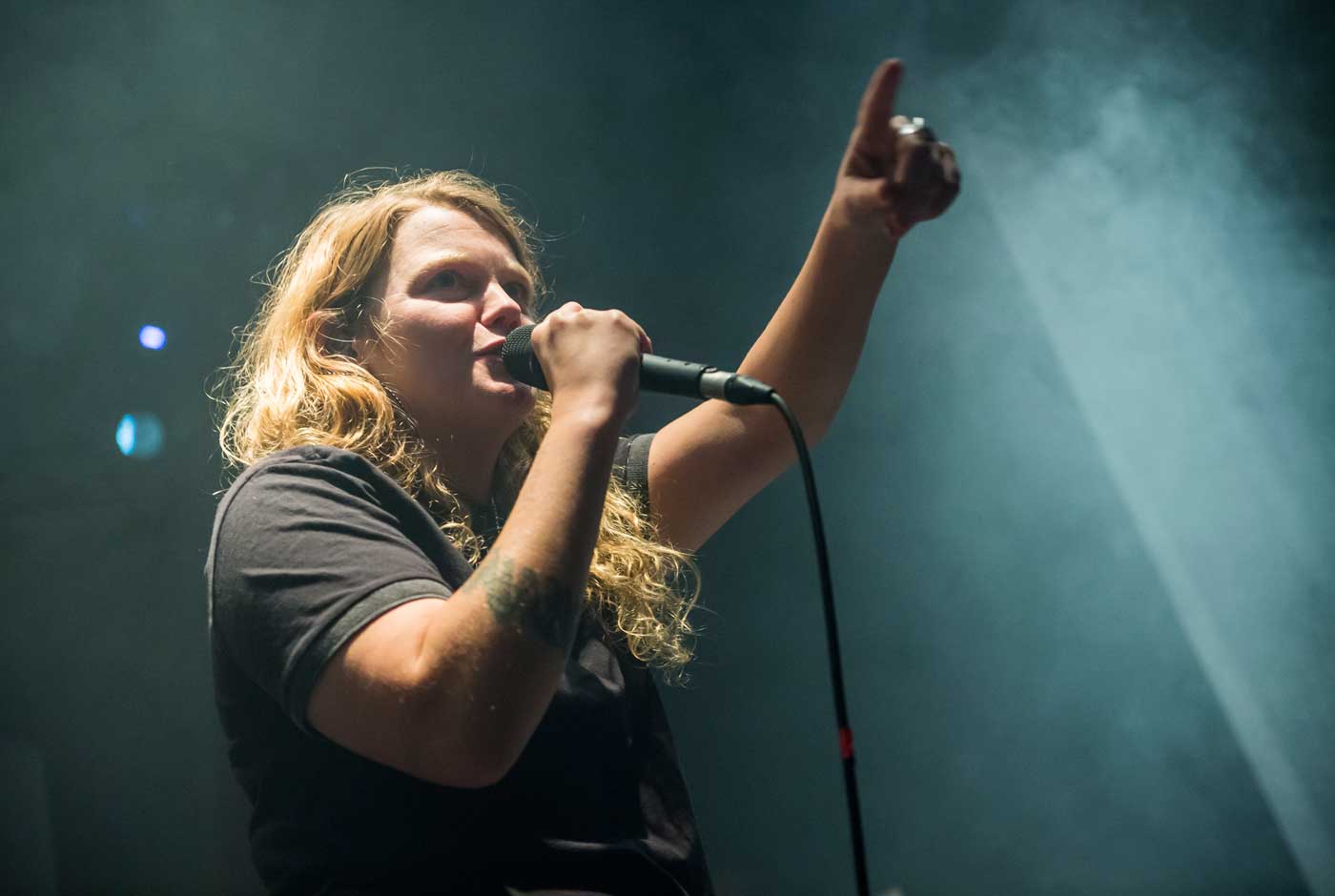 Tempest la emprende con todos los cortes de su segundo disco, “Lionmouth Door Knocker”, “Europe Is Lost” o “Pictures On A Screen”, aunque es la voz imparable la que manda. Kate Tempest acerca al mundo globalizado del siglo XXI el legado de otros maestros de la palabra interpretada sobre el escenario y combinada con música como fueron Linton Kwesi Johnson, John Cooper Clarke, Gil Scott Heron, el Michael Franti de los tiempos de Disposable Heroes Of Hiphoprisy, Mike Skinner (The Streets), James Williamson (Sleaford Mods), The Last Poets o incluso Zach De La Rocha y Patti Smith. La palabra, la poesía y el mensaje, la tradición y la ruptura, lo sensible y lo combativo, todo ello desde los ojos de una chica de treinta años que, como todos nosotros, solamente quiere seguir adelante y abrir los ojos en un mundo plano en el que la mierda rebosa por los extremos. Y es tal su magnetismo al comunicarle eso a la audiencia que su actuación gana incluso enteros cuando la música cesa y ella es la absoluta protagonista.
