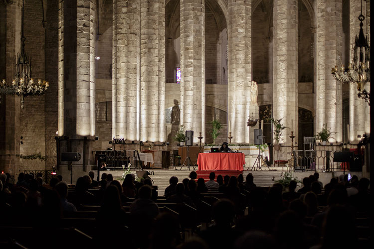 De repente, ni veinte minutos sentado, unos graves muy cercanos a Rival Consoles apesadumbran la Basílica de Santa María del Mar. Sin compás, secos. Dejando mucho espacio para que los sonidos densos cumplan su función, suma a la mezcla un silbido de tren. Irritante. Una bola que no rompe, que solo acumula tensión. Sonidos perturbadores.