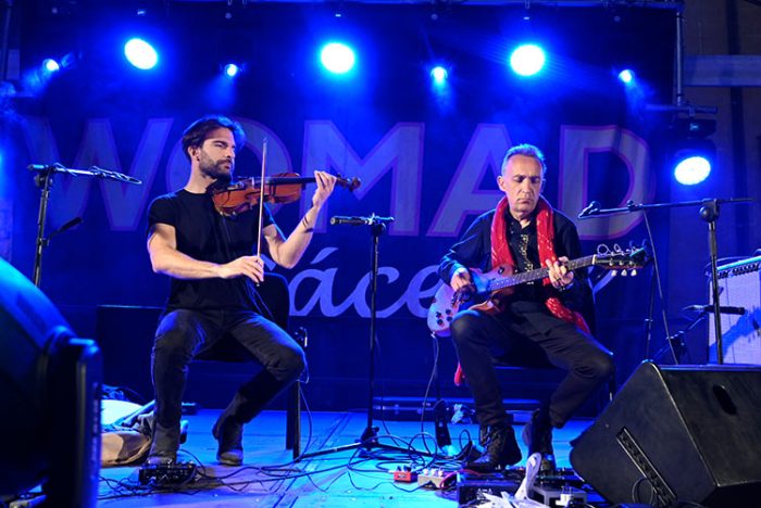 Y de la fiesta a una de las actuaciones destacadas de esta edición, la del dúo formado por el británico Justin Adams y el italiano Mauro Durante. El primero guitarrista procedente del post-punk, amante del blues y el rock. El segundo virtuoso del violín e inmerso en el folk tradicional de esa música de trance que es la taranta, proveniente de la “Puglia” italiana. El nombre de Justin está asociado, entre otros, al de Robert Plant, Tinariwen, Rachid Taha o Jah Wobble (con el que, como confesó Justin, actuó en la primera edición de este Womad de Cáceres). El de Mauro al excepcional Canzoniere Grecanico Salentino. Fruto del encuentro y la admiración mutua entraron al estudio y grabaron el aclamado internacionalmente “Still Moving”, que es lo que vinieron a presentar. Justin a la guitarra y voz, Mauro con su violín, pandero y voz se bastaron para crear unos ambientes musicales, a momentos relajados, pero en otros bien fieros. La calma estuvo en temas como “Djinn Pulse” o “Amara Terra Mia” (emotiva versión de Domenico Modugno), y la tormenta llegó con otros como “Red Earth” o “Tallasa”, donde los diálogos entre violín y guitarra eran bien bravos e intensos. Otra prueba de que un dúo, minimalista, puede alcanzar cotas bien altas de emoción.