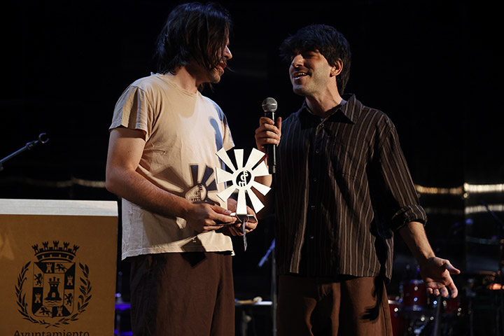 El Auditorio Paco Martín de nuevo a reventar y el premio que lleva su nombre al grupo revelación de las músicas globales 2025 recae en dos jóvenes hermanos murcianos, Álex y Víctor Hernández, el dúo Maestro Espada, por su debut homónimo producido por Raül Refree, en el que se inspiran y juegan con la tradición, respetándola y experimentando con ella, creando vías entre el pasado y el futuro para que la memoria popular no se pierda y palpite su energía primigenia con los latidos de la música contemporánea en un enriquecedor y cuidado collage de géneros (del pop al folk americano, pasando por el techno, las malagueñas, jotas murcianas, cantares huertanos, parrandas o cuadrillas), con el dominio y el diálogo de instrumentos diversos (castañetas, laúdes, percusiones, sintetizadores, cuidada electrónica, guitarras eléctricas y un sin fin de distorsiones). Con todo, el jurado le otorga el Premio Paco Martín por “haber construido un universo sonoro propio donde el folklore de Murcia, uno de los más olvidados de nuestro país, y la música contemporánea, conviven de manera sobresaliente”.