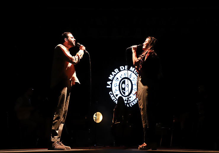Nos queda el que quizás fuera el concierto más esperado (sold out), la presentación del disco conjunto de Silvia Pérez Cruz y Salvador Sobral, “Silvia & Salvador” (25), dos voces increíbles, dos seres que, tirando una vez más del azar de la “Rayuela” de Cortazar, “andaban sin buscarse, a sabiendas que andaban para encontrarse”. Lástima que el cielo solo pudiera aguantar la emoción durante tres canciones y la lluvia provocara la cancelación del show. El trío elegido fue: El inicio, en pie y frente a frente, con micro y viva voz, una “Recordarte” que ya nos araña por dentro; la bellísima “Ben poca cosa tens”, con Salvador y Silvia, acústica en mano, sentados y fundiéndose con sus músicos (cello, segunda guitarra y laúd) en otra de esas interpretaciones que bien justifican los más de 500 kilómetros en tren y carretera que hemos hecho gustosamente para volver a estos mares sonoros. Y la tercera, suerte infinita la nuestra, esa maravilla de letra que les regaló el maestro Drexler y que Sílvia y Salvador hacen suya, “El corazón por delante”. Llueve, se van los músicos, se pueblan las gradas del Auditorio Paco Martín de triste paraguas, improvisan carpa para los instrumentos, pero ya los cables y cada palmo de escenario están empapados… Sucede lo irremediable, se suspende el concierto. Pero “no hay mal que por bien no venga”, sí, es cierto que no habríamos querido que pasara, para disfrutar de un concierto que nada más había hecho empezar, pero lo que nos llevamos para el recuerdo es irrepetible: los mismos músicos, con Salvador y Silvia al frente, salen y nos informan a pleno pulmón de la cancelación y, para que el amargor no sea tan fuerte, interpretan dos temas desenchufados, dejándose las gargantas y en comunión total. Acústica, cello, banjo y Silvia al tambor herreño, con Salvador al mando vocal y todos a los coros en una alegre canción folk-country que podría haber sido antídoto perfecto para ahuyentar los nubarrones y que todo volviera a empezar... Pero no, nos vamos con una interpretación a tumba abierta de “Mañana” que se acerca al milagro y que, si no estuviste allí, ojalá tengas tú también esa suerte de vivirla alguna vez. Silvia dejándose el alma en cada verso desde el filo del escenario, como si fuera la última noche en la Tierra, con los músicos y público al completo siguiendo cada una de sus instrucciones para acompañarla a los coros y en cada estribillo… “¡Qué falsa invulnerabilidad la felicidad! / ¿Dónde estará ahora, dónde estará mañana?”. Estará aquí, en Cartagena, en ese momento que no podrá borrar ni toda la lluvia del mundo.