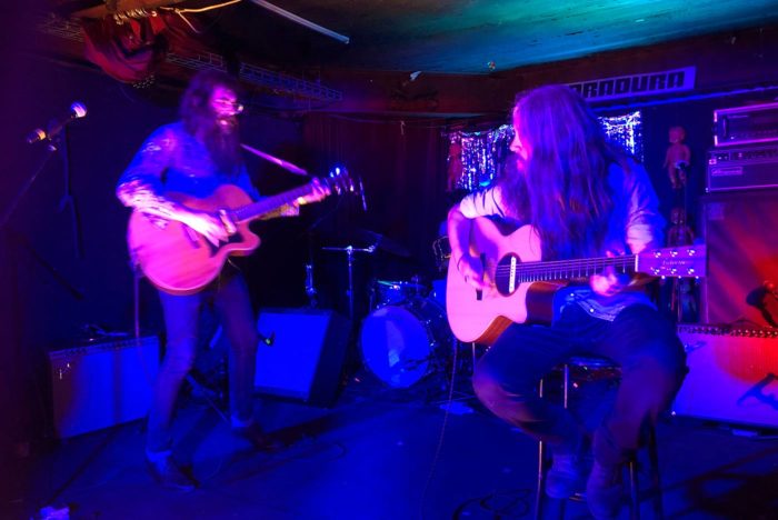 Mi periplo de conciertos arrancó en la sala Caradura (Escenario Monkey Week), donde llegué a tiempo para ver el directo de los mexicanos Belafonte Sensacional. Grata sorpresa en directo de una banda de los que ya había escuchado algún tema pero que, por alguna razón, no había logrado entusiasmarme tanto como cuando los vi derrochando energía sobre el escenario. Frenéticos frente al micrófono, interpretando temas con una cargada jerga mexicana que, por momentos, me recordaron a sus paisanos Café Tacuva pero a ritmo de un folk fronterizo adornado con la dulce melancolía de la trompeta. Lograban trasladarte sin esfuerzo a algún desierto polvoriento del norte del país. Una auténtica maravilla para comenzar la tarde.