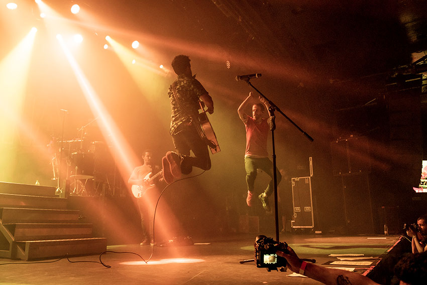 Han pasado las 21:00h y los pocos que han conseguido invitación in situ siguen entrando por goteo. El poderío femenino se apoderó del escenario con Las Chillers, que a grito de “¡Viva la visibilidad de las lesbianas!” pusieron el toque punk con su versión distorsionada del ‘Mujer contra mujer’ de Mecano. Junto a La Pegatina, ‘Y volar’. Acto seguido, la cantante Rocío aprovechó para denunciar la censura en la red social del momento: “A Instagram le molestan los pezones” (el presentador ya había invitado al público a llenar sus perfiles con fotos si Rocío enseñaba “las tetas”). El punto y final a la ronda de teloneros la pusieron Arco y The Groovers, que finalizaron con su versión del ‘Lloverá y yo veré’.