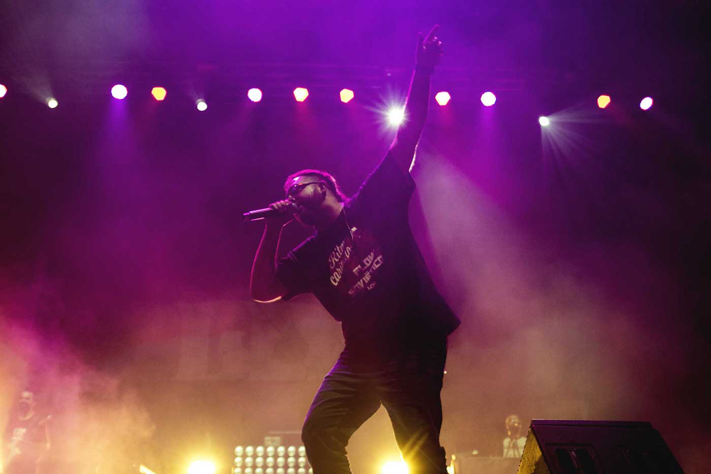 Hubo lugar también para las colaboraciones y momentos estelares como la participación de Adala en “Gira la Moneda”, el Auténtic Home Llúdriga en “Tant Per Fer” o EAM en “Guerra Mental (Societat d'algun Troll), que es lo más cerca que han estado nunca LDS de sonar como ese referente del rap-rock que son Def Con Dos. Y es que “Vértigo”, el nuevo trabajo que estaban presentando en sociedad los catalanes, es su disco más áspero, directo y meditado. Un álbum que dota de canciones muy políticas como “Futuro bajo arresto” a su repertorio, logrando que su flow sea mucho más rap que nunca, lo cual no impide para nada que la gente no cese de balancearse en ningún momento, y participe gustosa de los juegos que les proponen desde el escenario. Es obvio que hay ganas de pasarlo en grande y las muestras de agradecimiento de Neidos, Microbio y Still III se suceden, a la vez que tienen momentos para recordar sus duros inicios desde el Maresme cuando no le hacían ascos a tocar en cualquier escenario, en las condiciones que fueran. De esa forma y gracias al boca a boca su base de fieles seguía creciendo hasta catapultarlos a lo que son en la actualidad.