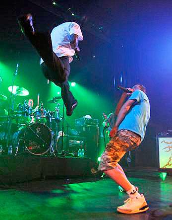 Un apolo que rozaba el lleno, acogió con entusiasmo la contagiosa propuesta de los franceses. Uno de esos combos a los que no les importa tanto las canciones, como la densidad que pueden llegar a alcanzar en su directo. Una densidad oscura, casi tan tenebrosa como la más bien excasa iluminación del escenario, repleta de groove y de bajos de esos que suenan tan gordos como poderosos. Musicalmente la base de su propuesta es el rap, pero el de la vieja escuela. Ese rap que no duda en echar mano del crossover metalero, del funk, del jazz, del ragga... Pueden pasar de sonar a lo RATM, Public Enemy o incluso ADF a que la espesa nube de hachís que flotaba en la sala nos recordara los viejos tiempos en los que Cypress Hill eran alguién o Fun Lovin’ Criminals mostraban su desparpajo funk gangsteril por los escenarios de medio mundo. Y es que los de Lyon han crecido con un oído en Nueva York (Beastie Boys son su principal refernte) y otro oído en el excelente rap que siempre se ha practicado en el país vecino. Pero no sólo eso. El drum’n bass también tiene cabida, así como el dub y los pasajes de instrumentación cinemática que bien podrían haber encajado en una de esas películas de los setenta como “Malas Calles”. Puestos a poner una pega lo único que eché a faltar es que las guitarras no estuvieran pregrabadas y que, como el bajo, fuera un elemento orgánico más de su puesta en escena. Y máxime cuando su última entrega es de largo su disco más roquero con temas como “Back Against The Wall” que junto a temas como “Look Up” o “Plastic People” se convirtieron en momentos de gran intensidad, pero sobretodo de una variedad estilística tan grande que hacen que sea imposible aburrirse en uno de sus bolos.