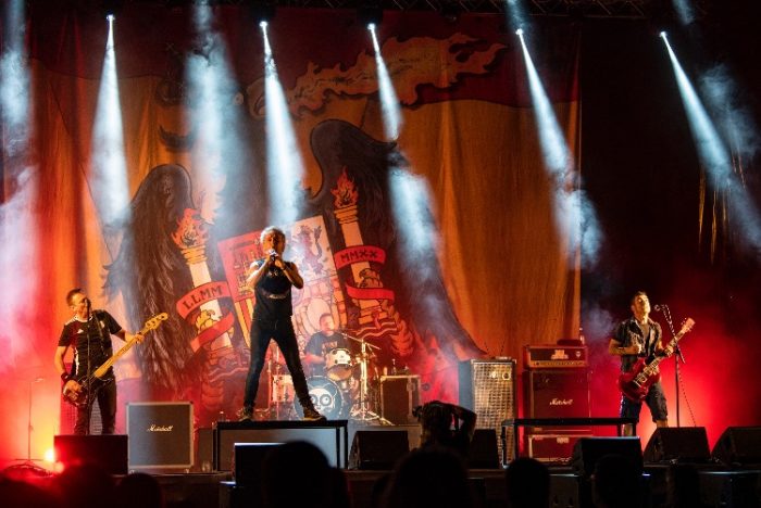 La gente continuaba entrando a cuentagotas, mientras se ultimaban los preparativos que darían paso a la actuación de los cabezas de cartel de la noche. Bandera gigante desplegada, con águila godzillera incluida, y los cuatro navarricos ingeniosos y respondones tomaron las tablas dispuestos a no dejar títere con cabeza. Lo único que fue light fue su primer tema, esa "Cerveza sin alcohol" de minuto y medio con la que, ya de inicio, rompieron las hostilidades. Hasta 30 canciones desfilaron a todo trapo durante hora y cuarto de pura descarga de adrenalina. Lendakaris Muertos repartieron a diestro y siniestro, picoteando de su amplia discografía. Sonaron "No tomorrow" y "Speed light", adelantos del que será su próximo trabajo publicado, "Spainkiller". Tampoco se dejaron en el tintero bombas de actualidad postpandémica como "Cóctel molotov al chivato del balcón" o la tronchante "Miguel Bosé". Por el camino se unieron, por supuesto, pequeños y grandes clásicos lendakarianos. "El último txakurra", "Cómeme la franja de Gaza", "Fuimos ikastoleros" y "Veteranos de la kale borroka" fueron de los más coreados por una muchachada entregada a la causa del desfase y el cachondeo. Memorable resultó la interpretación de la mítica "Gora España", con la que Aitor se metió en un jardín pureta y viejoven, rememorando la célebre fotografía de Emilio Butragueño con sus "balones" escapando del ajustado pantalón futbolero ochentero.