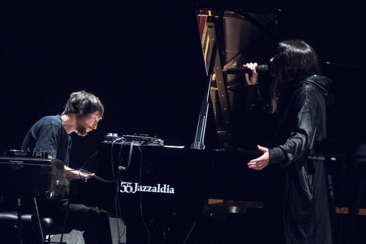 Y así es como surge el trabajo "Lina_Raül Refree”, que reúne doce composiciones de la mítica artista portuguesa cuyos protagonistas han adaptado a un directo intimista que se pudo disfrutar en esta 55ª edición de Jazzaldia. La escenografía, sobria y sin florituras, sirve como complemento indispensable y antagónico de unas melodías recargadas de sentimiento, incertidumbres y des/amores. Con “Medo”, que daría inicio a la actuación, la propia Lina adquiere un papel protagonista en la escena bajo un foco que alumbra cada una de sus sentencias, y que acaba siendo una de sus armas durante toda la actuación. Refree, por su parte, rezagado en un lado del escenario, hace brillar cada una de las composiciones con diferentes intensidades de graves, piano e incisivas estructuras. “Cuidei que tinha morrido”, una de las grandes y accesibles canciones del álbum, sirve como compendio de la propuesta artística que defienden con éxito. A los pocos minutos uno ya ha entrado en un nuevo universo.