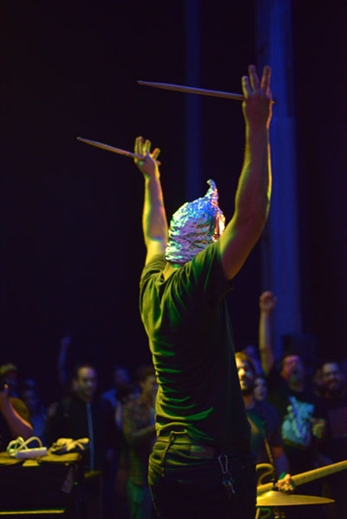 En los festivales clásicos tenemos todo eso, lo esperable: el escenario, el espacio para el público, que si una zona VIP, que si un foso para fotógrafos, etc. Rompan con todo lo escrito para entender al Keroxen. Ya una cita artística que se desarrolla dentro de un antiguo tanque de petróleo marca territorio. Encima la ausencia de un escenario físico rompe la barrera, para bien y para mal, entre público y artista. La noche puede empezar calmada con los asistentes sentados en esos bidones que igual sirven de silla, de pieza para construir sofás o como elemento fundamental de la espectacular pantalla donde se proyectan los visuales. Pero luego la noche se pone golfa, adiós al asiento y el grupo de turno termina envuelto en una fiesta, catárquica y desordenada, que en este fin de semana del Keroxen tuvo momentos que cruzaron la frontera entre lo simpático y lo cuestionable.