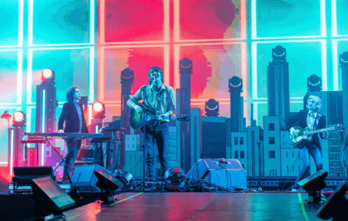 Lori Meyers irrumpieron en escena con proyecciones apocalípticas y mucha energía en la interpretación de “Seres de luz”, piedra angular de su nuevo sonido. Su hit “Luces de neón”, que atacaron inmediatamente después, marcó territorio. Hablando de luces, hay que destacar el espléndido trabajo en el diseño de la iluminación y los vídeos que complementan un espectáculo de diseño milimétrico muy pensado para recintos de dimensiones colosales, y que discurre con la versátil naturalidad de la banda. Los andaluces no tienen problema en pasar del rock psicodélico a las baladas de estribillos tiernos, los pasajes donde mandan las atmósferas futuristas, el indie pop de autor, el funk rock bailable y la delicadeza sensible. Es su sello.
