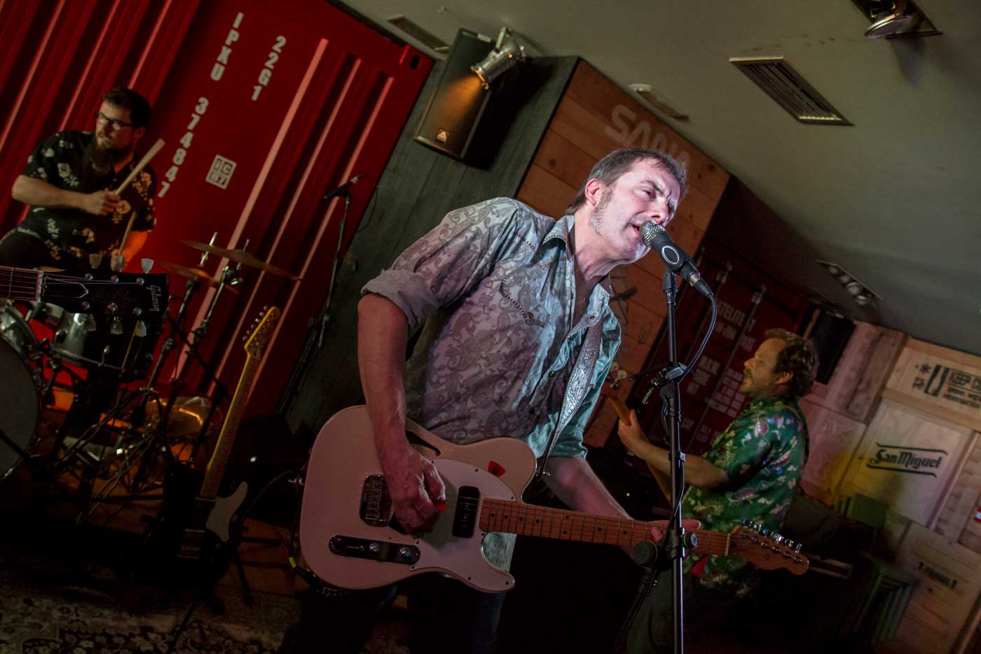 Volviendo al concierto, podría empezar contando que salieron con una aceptable media hora de retraso que se hizo amena escuchando, de mientras, cosas como The Romantics o los Dictators. Pisaron escenario cargados con avituallamiento líquido y Hendrik Röver cegado por los focos. Ya colocados, y saludado el público con un parco “muy buenas”, se arrancaron con una inflamada “Taquicardia” a la que siguieron, sin posibilidad de resistirse, “Elvis”, “Miedo”, “Sur” y “No por nada”: riffs a tutiplén y bien entrelazados, melodías vocalizadas con dinamismo y una base rítmica que incita cuando tiene que incitar y reclina cuando tiene que reclinar. Ellos que suelen hablar de gasoil y Mustang azules me permitirán que haga esta asociación: con esa catálisis de inicio no hizo falta asfaltar y peraltar la carretera por la que nos iban llevando, una vía secundaria que, por supuesto, evitó las circunvalaciones, cruzó pueblos en resistencia, celebró la presencia de jubilados apostados junto al cambio de rasante y aplaudió a los zagales que escupen desde el puente de la autopista cuando vuelven a casa de gaupasa. Un viaje que no fue iniciático pero sí tonificante, un viaje musical afinado y sugerente, donde a los que escuchábamos solo nos quedó la opción de subirnos a la batea en marcha y disfrutar del paseo. En el estéreo del coche, mientras tanto, sonó a gloria la sensatez con retranca de “Muy bien”, la coda iluminada de “Colisión” o el brío de una “Saluda al rey” que sonó cosida a “Impostor”, destacando el funk que emanaba la guitarra de Fernando Macaya y el redoble de frente de una batería que, en la siguiente, “Merecido”, si no me equivoco, se relajaba y llevaba el ritmo con la baqueta reposada en el bordillo del tambor. Se cantó a pulmón “Brindemos”, tres minutos sentimentales que precedieron al acelerón final con “Salud!” y “Gasolina” para terminar con la ya mencionada “Mirar atrás”. Pero solo fue un alto en el camino porque volverían a arrancar, tirando de pistones con la armónica en su reciente “Sanmartín”, seguida de una lúcida “Repartiendo” y frenando de nuevo con su habitual versión del “Hard Luck Blues”. Pero había más esperando tras la próxima curva. Volvieron para un segundo bis donde, esta vez sí, viajaron en el tiempo y recuperaron “(Soy un) Hombre enfermo”, que algún paciente había estado pidiendo a gritos, y “No, Señor”. Entonces, sí, se acabó la gasolina.