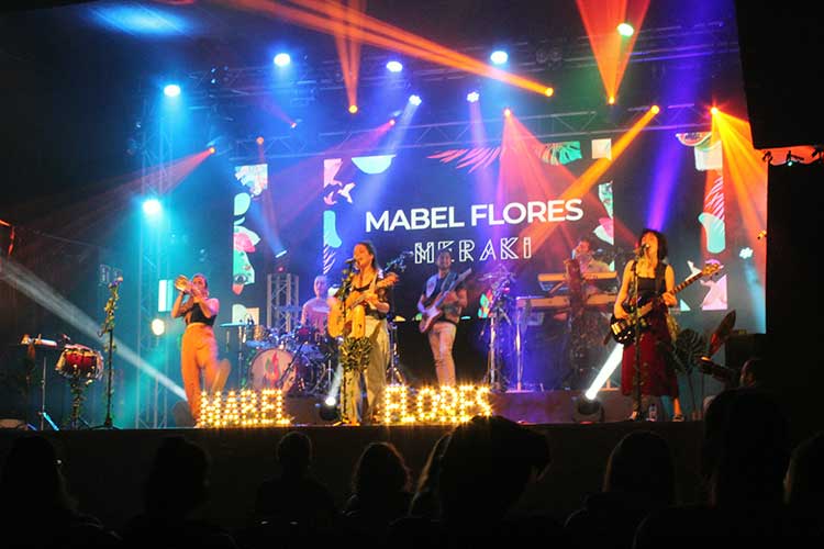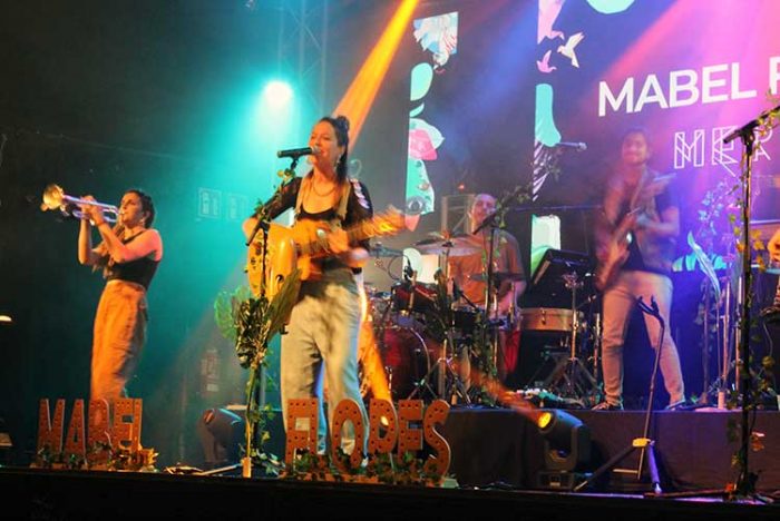 Para poder instaurarnos en el universo de su nuevo trabajo, el espectáculo comenzó con sonidos de naturaleza y una voz en off de la propia intérprete que nos invitaba a disfrutar del concierto de la forma que quisiéramos. Tras esto fueron apareciendo una a una las seis músicas que iban a copar el escenario y por último Mabel. Y volvió la luz y con ella “Ya llega” con un inicio muy potente que decidió continuar con “Vamos a volar” y consiguió arrancar las primeras palmas por parte del público. Con tan solo estas dos canciones ya demostraron la fuerza del directo que poseía la formación catalana, que convertía todas las composiciones en una gran fuente de energía. Para pasar al siguiente tema lo hicieron enlazando con un solo de piano, una fórmula que repetirán de nuevo más adelante, pero con otros instrumentos. Prosiguieron con un canto a la libertad, y en este instante todos los asistentes sin darnos cuenta, habíamos entrado de lleno en “Meraki”.