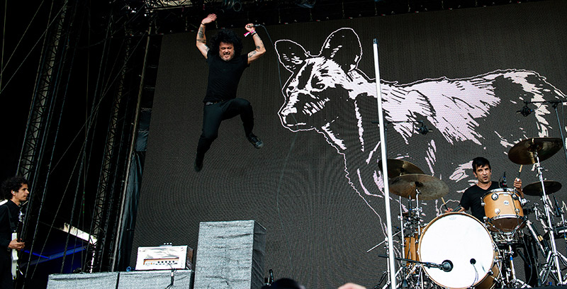 El viernes, la organización minimizó los problemas más serios del primer día. La entrada al recinto era mucho más ágil, y se podía comprar una bebida en un tiempo razonable, sin dejar de ver medio concierto. Kevin Morby había desplegado clase y sobriedad en el escenario más grande, Real Estate habían planteado un concierto elegante aunque poco festivalero en Koko y At The Drive In, de negro riguroso, se hicieron fuertes con su energía concentrada y mala leche en el escenario Madrid Te Quiere. Una energía que, no obstante, casi siempre estuvo por debajo del sonido, algo confuso y artificial. Un Cedric Bixler-Zavala desafiante (saludó con un impagable “mocosos, cabrones”) y empeñado en cargarse el pie de micro y hacerse daño (y a uno de los cámaras) lideró a una banda que se mostró engrasada y en buena forma, aunque su propuesta no tenga ya tanta pegada como en el año 2000; cuando aquél Relationship of Command hizo estragos entre los acólitos de lo que sería la escena post-hardcore, algunos de los cuales a buen seguro estuvieron en las primeras filas sudando de lo lindo.