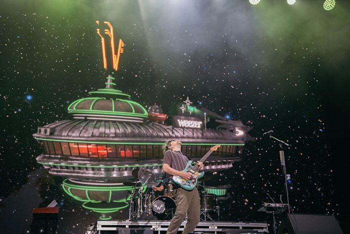 Los norteamericanos Weezer tuvieron que remar contra corriente por el gigantismo abrumador que les precedió (y la previa exhibición de Iggy Pop y sus músicos). Y eso que hicieron lo que tenían que hacer, tirar de material de sus modestos clásicos, dejando “Buddy Holly” para el final.
